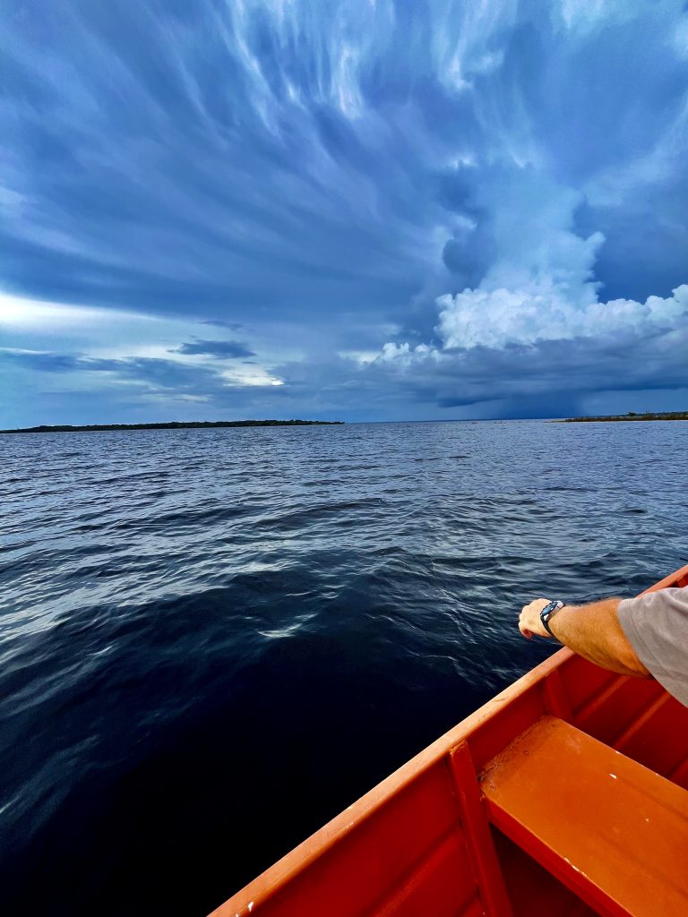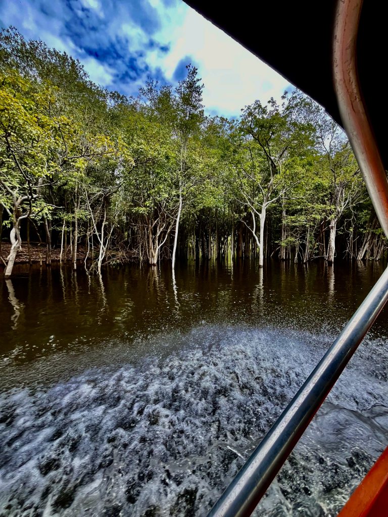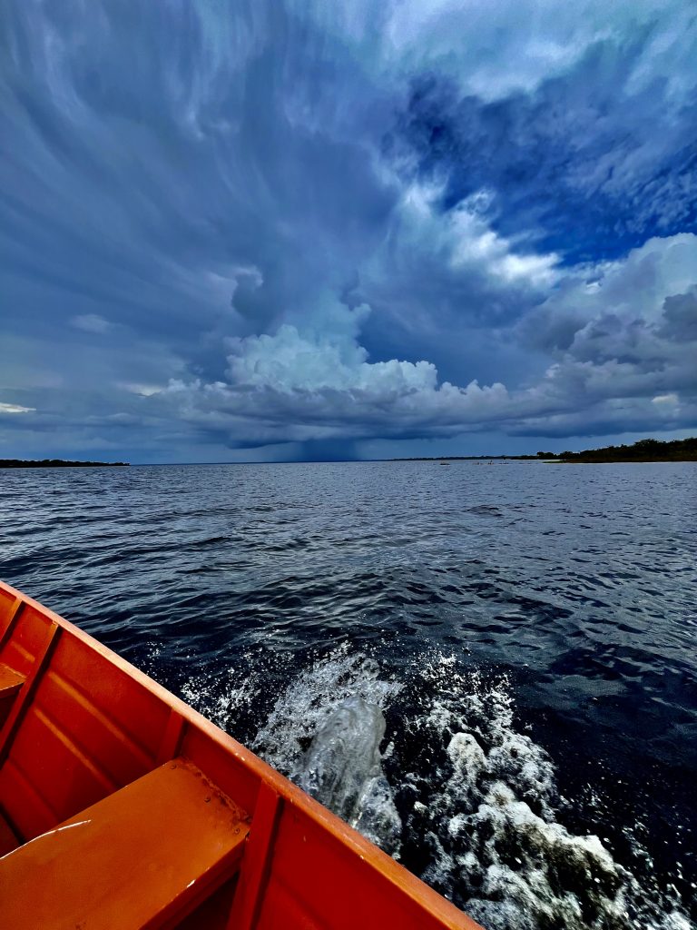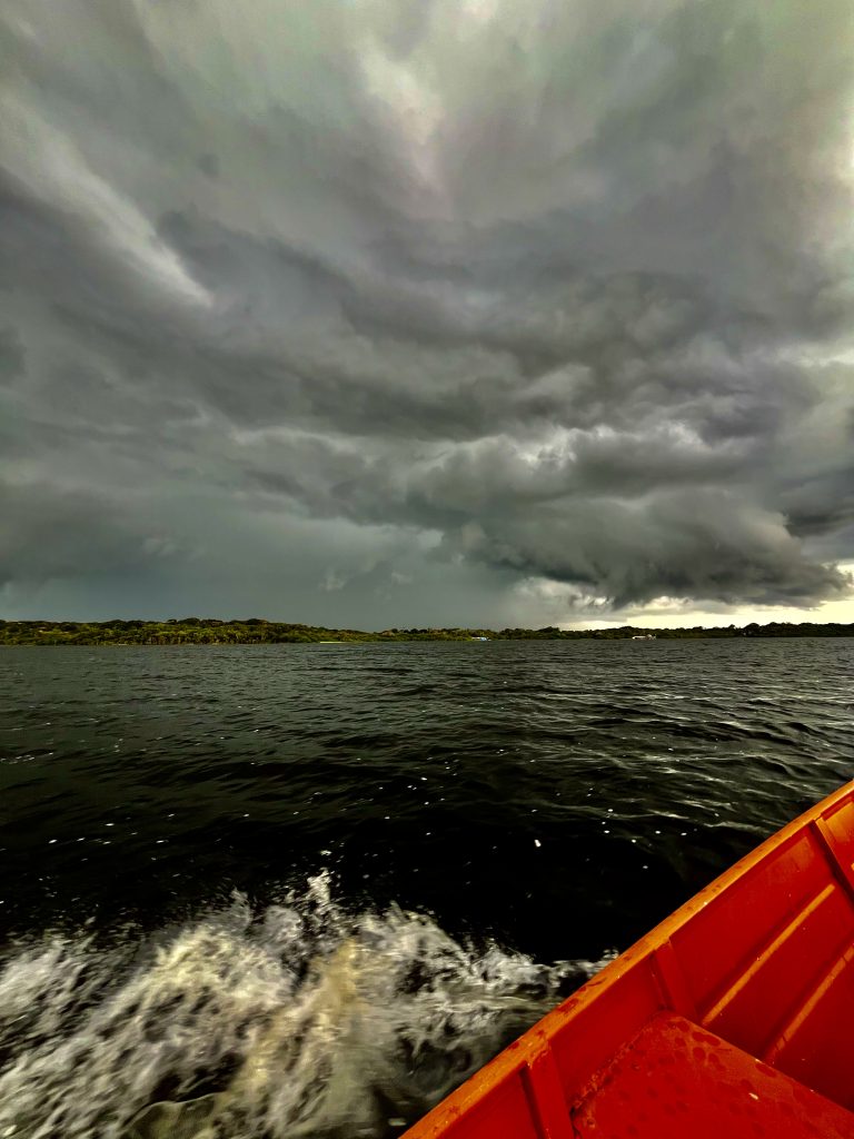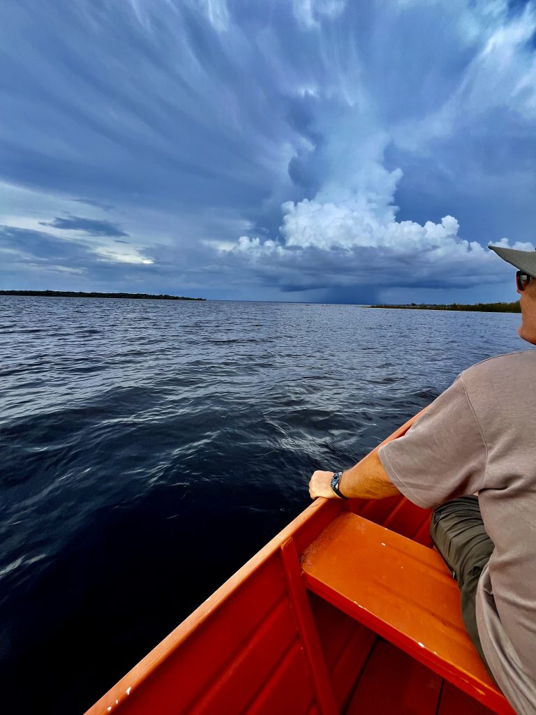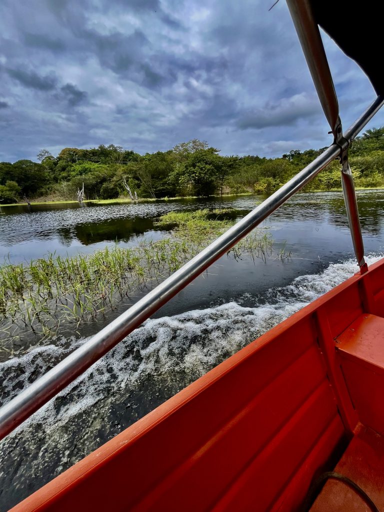 Pünktlich um 15:15 Uhr starten wir mit Nixon am Ruder und Germano als Guide unsere Flusstour. Das Ziel ist, raus aus dem Flussarm bis zum Rio Negro.