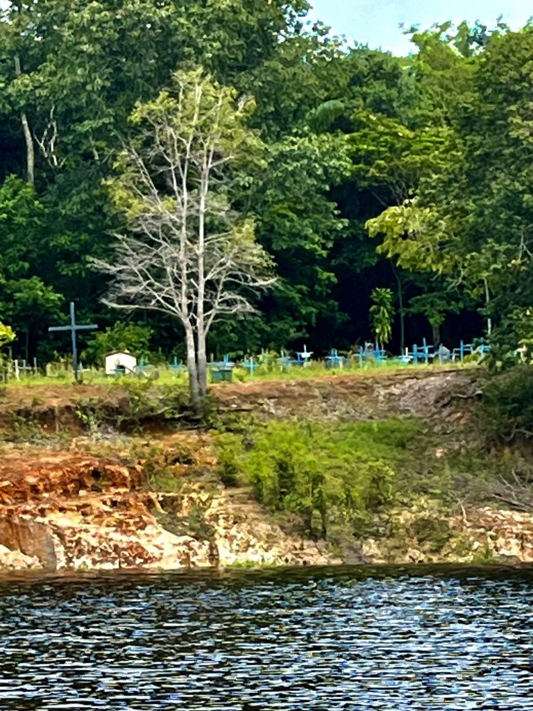 Dann erzählt uns Germano noch, dass es letztes Jahr im Oktober, ein fast nie dagewesenes Niedrigwasser gab. In den Monaten davor, gab es die niedrigsten Niederschlagsmengen seit 1980, und der Fluss zog sich auf seinen ursprünglichen Verlauf zurück. Überall wo wir jetzt Wasser sehen, war nichts mehr. Der Fluss als Verkehrsweg funktionierte nicht mehr, die einzelnen Dörfer waren voneinander abgeschnitten, die Wasserversorgung war unterbrochen, und viele Fische und Flussdelfine starben. Forscher meinten, El Niño könnte der Grund für die Misere gewesen sein. Und das, wo doch der Rio Negro als der sechst wasserreichste Fluss der Welt gilt.
