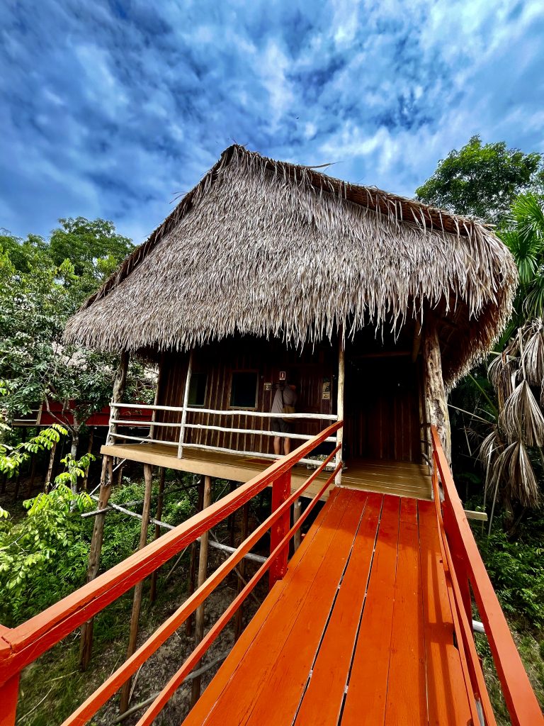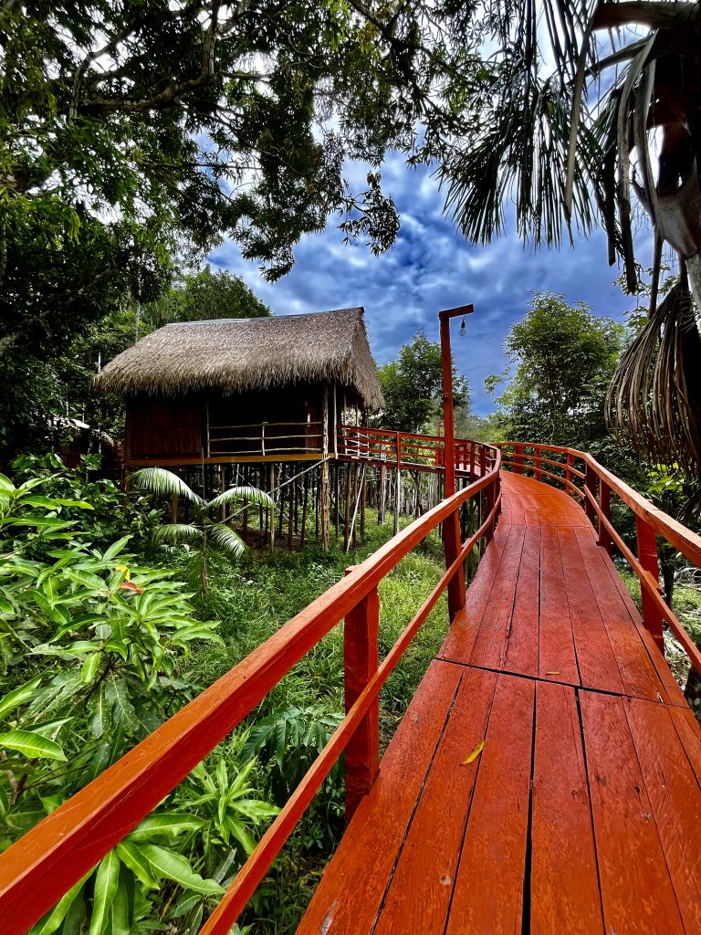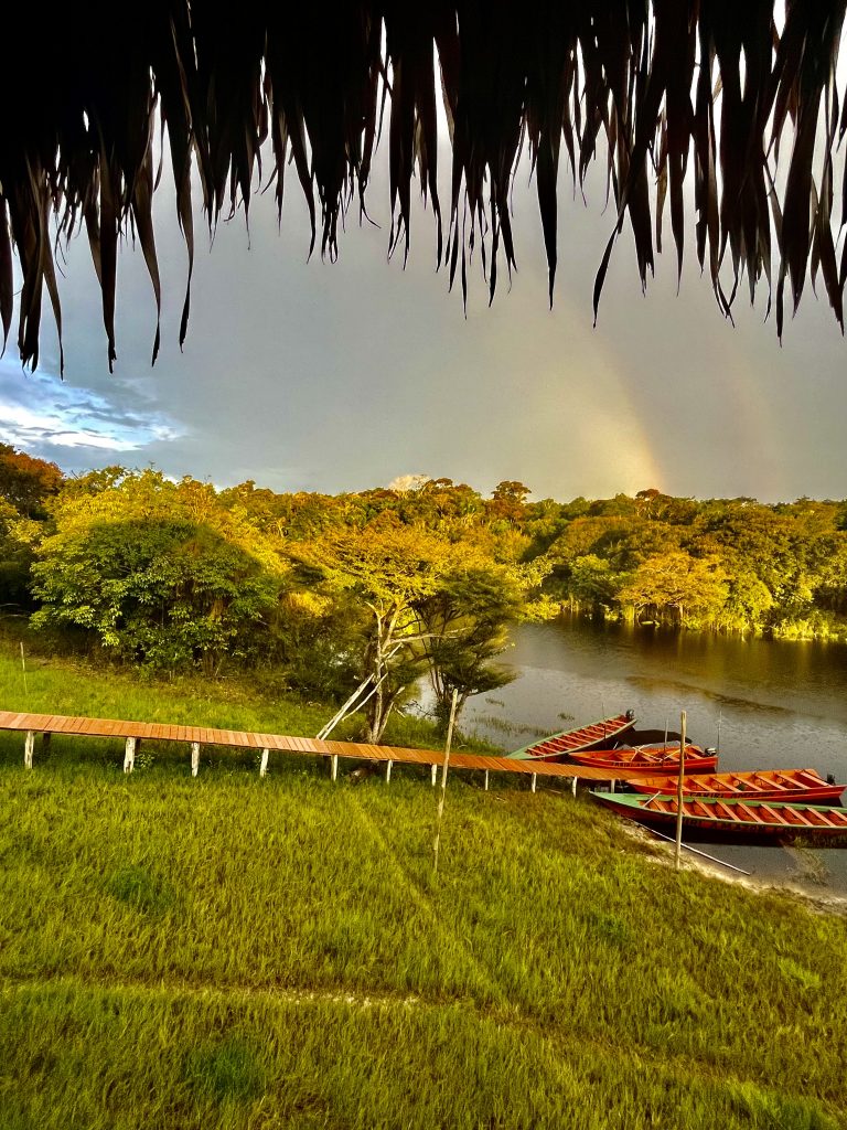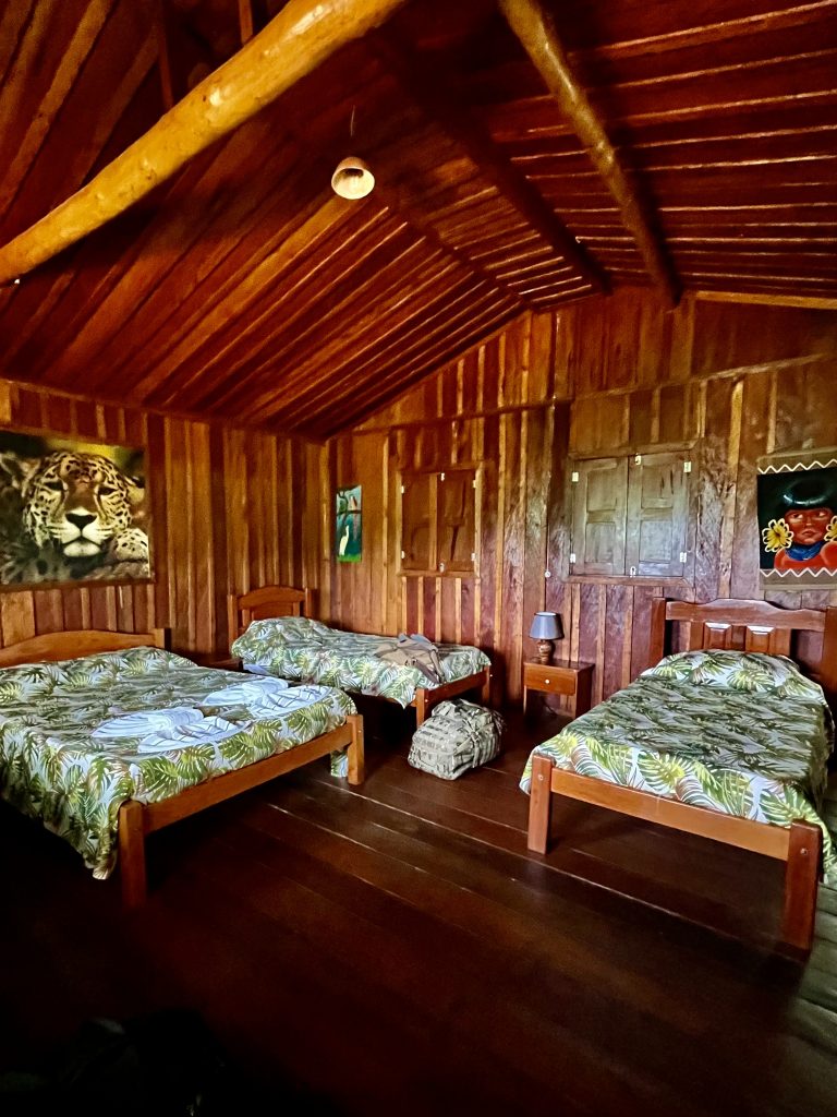 Fabiola weist uns erstmal ein, nachdem sie uns einen Cashewsaft zur Begrüßung gereicht hat. Also, nicht die Wildtiere anfassen und auf gar keinen Fall füttern. Immer die Tür zur Hütte geschlossen halten, die Affen schnappen sich alles, was sie nur kriegen können! Okay. ✅ Aber nicht anfassen? 😔 Wenn sie doch zu einem kommen? Nun ja, sie muss es uns halt so sagen, der Staat legt Wert darauf die Wildnis wild zu lassen. Ich verstehe. 😉 Und um Punkt 13:00 Uhr gibt es Mittag, um 19:00 Uhr Abendessen und um 8:00 Uhr Frühstück. Sie schlagen dann jeweils die Glocke. 🔔 Okay. ✅ Dann wird uns noch Germano vorgestellt, wohl auch ein enger Mitarbeiter und Guide aus Peru. Und ihr Mann? Der taucht ja wohl auch noch auf? Jetzt zeigt uns Nixon die Schlafstätte.
