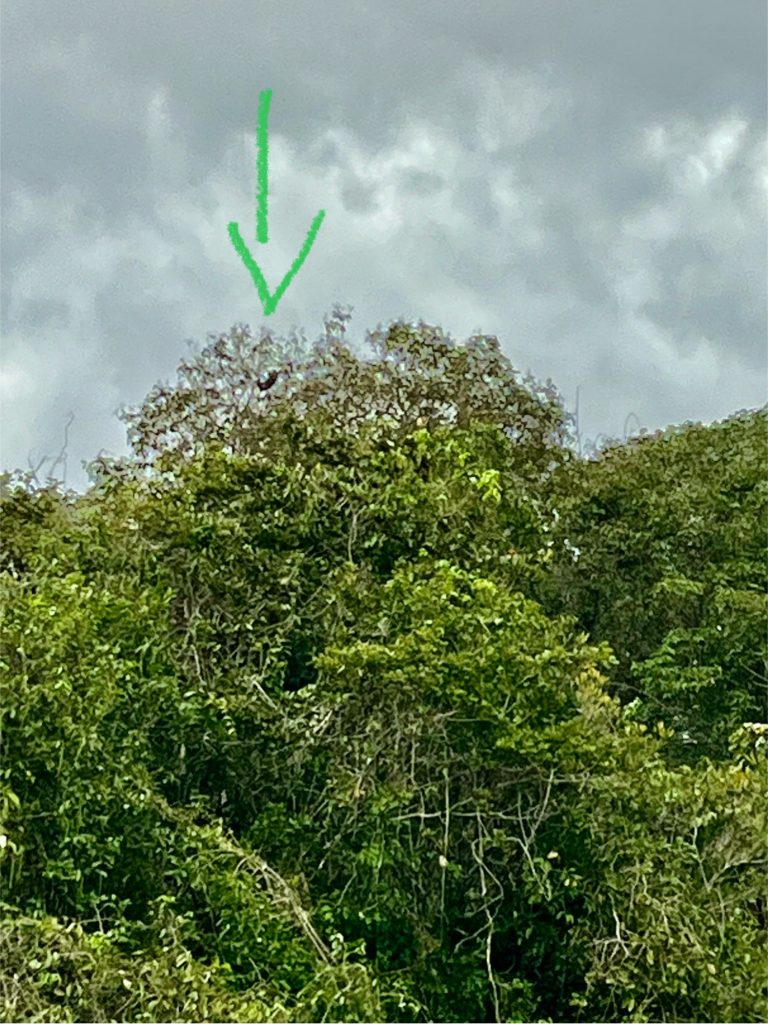 Und dann, Nixon sieht es als erster, ein Faultier ganz weit oben im Baum.