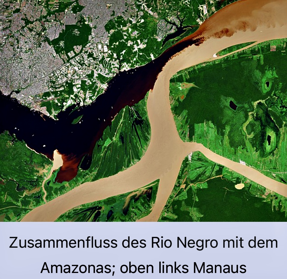 Wieso ist der Fluss denn eigentlich so schwarz? Sein Wasser hat einen sehr hohen Gehalt an Huminsäuren und Fulvosäuren, die die Schwärze des Wassers erzeugen. Der Regen wäscht diese Säuren aus den stark ausgelaugten, sandigen Böden heraus und schwämmt sie in den Fluss. Er entspringt dem Bergland Kolumbiens, fließt durch Brasilien und mündet im Amazonas. Das Wasser ist zwar schwarz gefärbt, aber durchsichtig. Es ist sehr nährstoffarm und beherbergt so gut wie keine Mückenlarven. Die Region gilt als Malaria frei. Wenn das schwarze Wasser auf das Schlammwasser des Amazonas trifft, kann man den Unterschied noch über 30 km sehen.