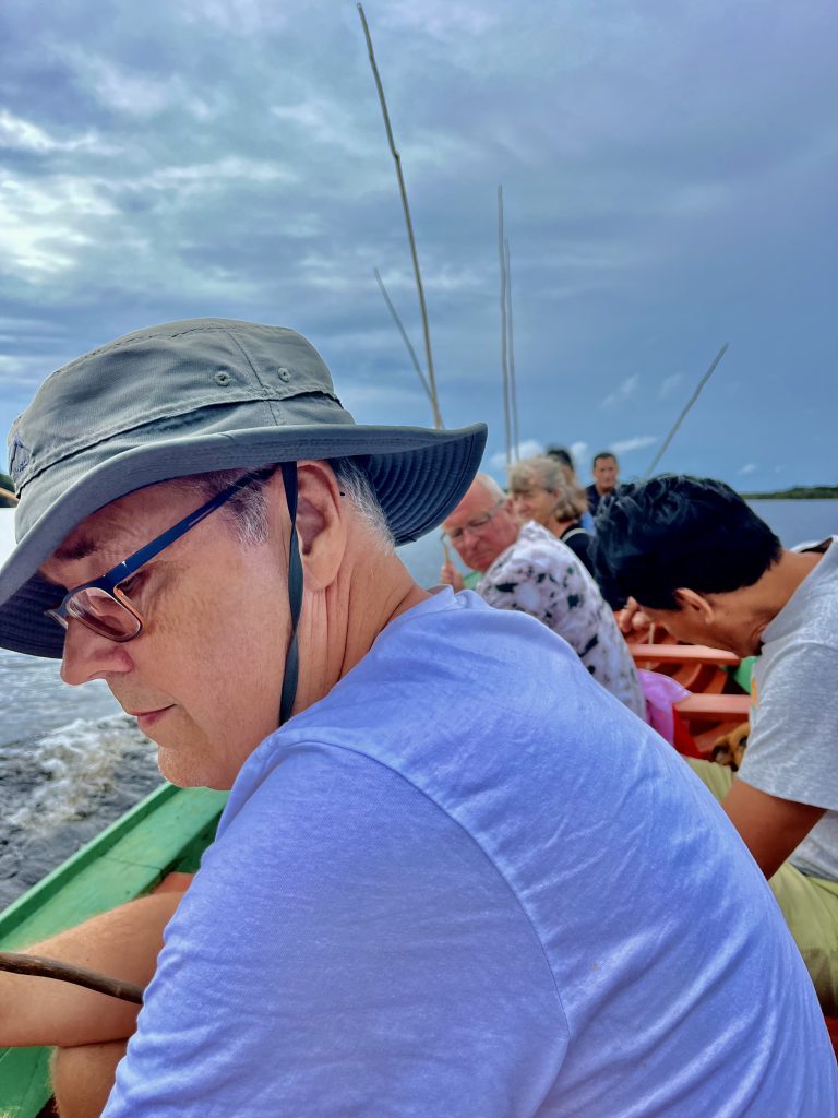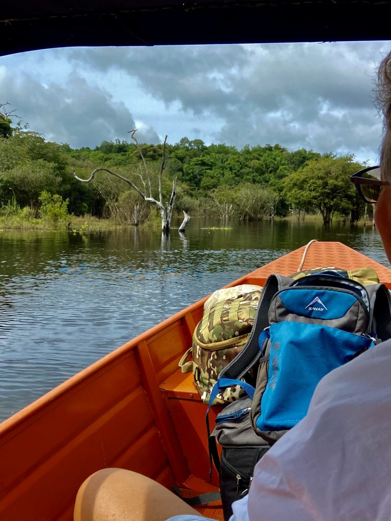 Es geht zurück, 20 Minuten übers Wasser, 8 Kilometer über die schrecklichste „Straße“ der Welt und 11/2 Stunden über die Schnellstraße und Brücke zurück nach Manaus, zum Flughafen. Unterwegs muss Klaus doch noch fragen, warum sie keinen Notstromaggregat haben, für Stromausfälle wie diesen? Doch, doch, den haben sie selbstverständlich, antwortet Fabiola, doch der war dann auch plötzlich und unerwartet kaputt. Murphys Gesetz! Aber heute soll die Stromversorgung wieder stehen und ein Reparateur für ihr Aggregat käme auch noch vorbei. Na dann wird’s ja wieder laufen. Wir verabschieden uns herzlich und schlendern in den Flughafen hinein. Nun werden wir den ganzen, lieben langen Tag, bis in die frühen Morgenstunden des nächsten (2:00 Uhr) warten müssen, bis unser Flug nach Recife starten wird. Leben auf dem Flughafen… Aber mehr dazu dann morgen, oder übermorgen, oder überübermorgen …. 👋…. 👋