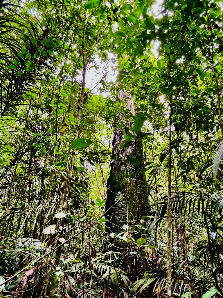 Und dann macht der Regenwald seinem Namen alle Ehre! Es beginnt erst leicht, dann stärker und schließlich sintflutartig an zu regnen. Egal, wir stapfen weiter.