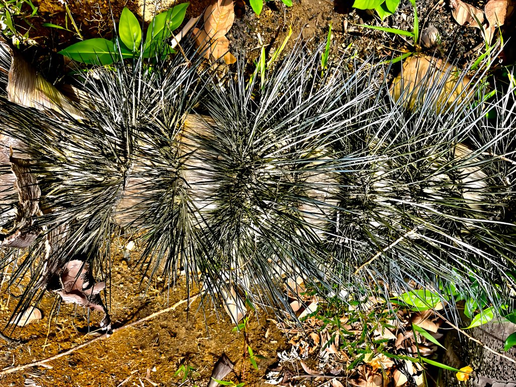 Was ist das? Eine Riesenraupe? Nein! Ein umgekippter Palmenstamm mit seinen gegen Fressfeinde entwickelten Schutzstacheln.