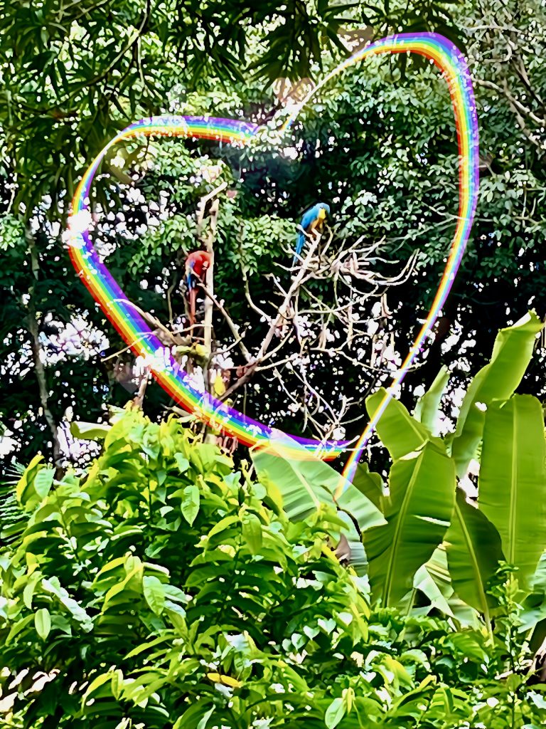 Ein letztes Frühstück, Verabschiedung von den anderen Gästen, die Papageine geben uns ein letztes Geleit, …