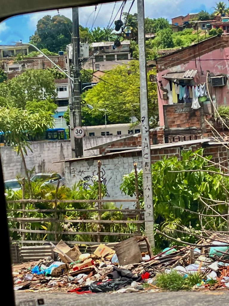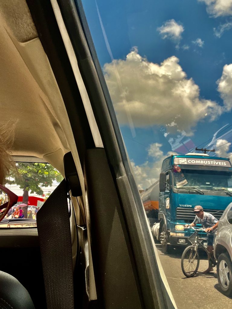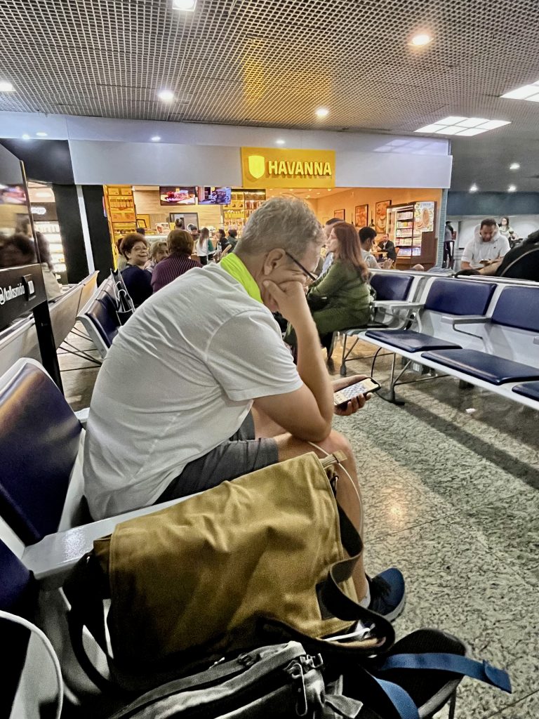 Der Mann da rechts vorne, schaffte es doch irgendwie? Wo lässt der seinen Bauch? Ich verstehe es nicht! Ich laufe immer wieder rum, bekomme jetzt schon restless legs. 😖 Wir holen uns etwas zu essen, was zu trinken und zu naschen. Die Zeit vergeht langsam. Seit 12:00 Uhr sind wir am Flughafen, erst um 2:25 Uhr geht der Flug. Doof ist, mein Internet geht ums Verrecken nicht. So kann ich nicht surfen, nichts für den Blog schreiben. Dann kommt der Flieger auch noch verspätet. Irgendwann sitzen wir dann drinnen und es geht los. 4 Stunden Flug bis Recife liegen vor uns. Die Durchsagen sind heute nur auf brasilianisch. Vor uns auf dem kleinen Bildschirm können wir den Flug verfolgen. Nach etwa einer 3/4 Stunde Flugzeit, schauen wir uns verwundert an. Das Flugzeug macht eine Kehrtwende und fliegt zurück. 😧🫢😳 Was ist los? Was ist passiert? Hat das Flugzeug ein Problem? Da bekomme ich mit, dass vor uns eine junge Frau aus der Kombüse kommend von 2 Stewardessen gestützt, zu ihrem Platz geführt wird. Ein Stewart geht schnellen Schrittes durchs Flugzeug hin und zurück. Ich frage meinen Sitznachbarn, nicht Klaus, was los ist und ob er ein wenig Englisch könne? Ja, ein wenig, deutet er mir an, und dass wegen der Passagierin der nächstbeste Flughafen angeflogen wird, um sie ins Krankenhaus bringen zu lassen. Aha. Fliegen wir dann wieder weiter? Wahrscheinlich schon, seine Antwort. Na hoffentlich! Morgen steht Beachen auf dem Programm ‼️Das dauert jetzt aber alles lange. Landung, Abtransport, Warten, Auftanken, Warten, Starten…Eine gute Stunde nimmt alles in Anspruch. Klaus informiert noch schnell unseren Abholer über die eingetretene Verspätung. Er weiß schon Bescheid und wird warten. Prima 👌. Er wünscht uns noch einen guten Flug. ✈️ Diesmal klappt alles störungsfrei. Das Gepäck kommt auch schnell, und es empfängt uns ein deutschsprachiger Guide. Dieser führt uns zu einem brasilianischen Fahrer, der uns nun die nächsten 2 1/2 Stunden zurück nach Cabedelo bringen wird. Ich muss schon sagen, die interne Abstimmung klappt hervorragend!!! Ein großes Lob an die Organisatoren der Reise, an Elisabeth!