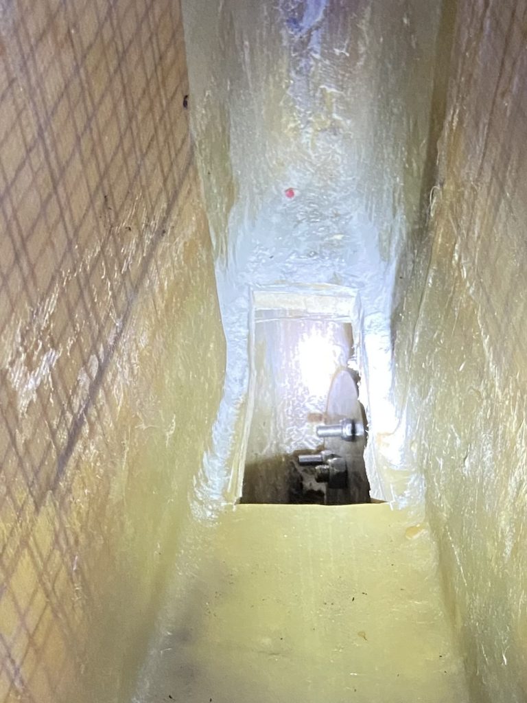 Jetzt möchte ich aber ins Wasser und nach den Rudern, Propellern und den Minikielen schauen. Also rein in die braune Brühe. Ich sehe nichts! Zu viele Schwebeteilchen, zu trübe, zu viel Speck! Zu viel Speck? Ja, zu viel Speck! Zu viel Auftrieb! Klaus meint, ich käme bei Flut immer wieder hoch. Danke! 😔Naja, auch nicht schlecht. 😝 Ich soll halt weiter runtertauchen! Aber, aber, es geht nicht… 🙂↕️. Er soll rein. Bei ihm klappt’s. Er kontrolliert die Ruder, dreht die Propeller, sieht die geklebten Saildrivegummis und bewegt den Impeller für die Bootsgeschwindigkeit. Sieht alles soweit gut aus, ist sein Eindruck. Unter die Minikiels kann er allerdings auch nicht schauen. Hoffen wir mal, dass trotz des üblen Geräusches nichts passiert ist.