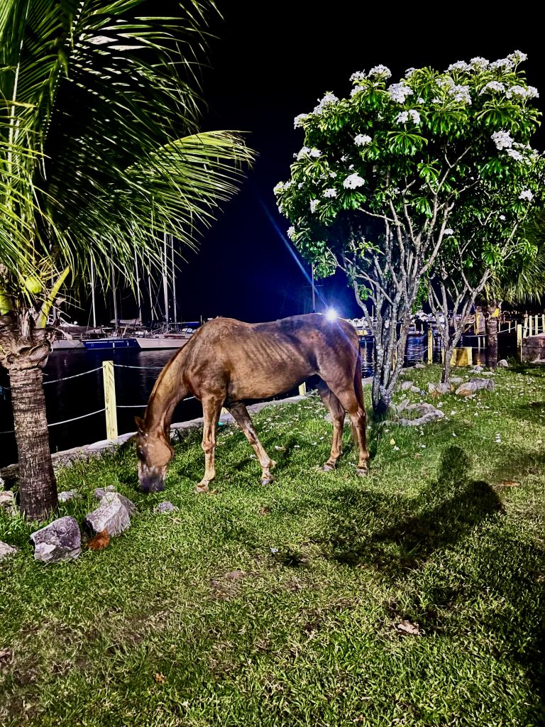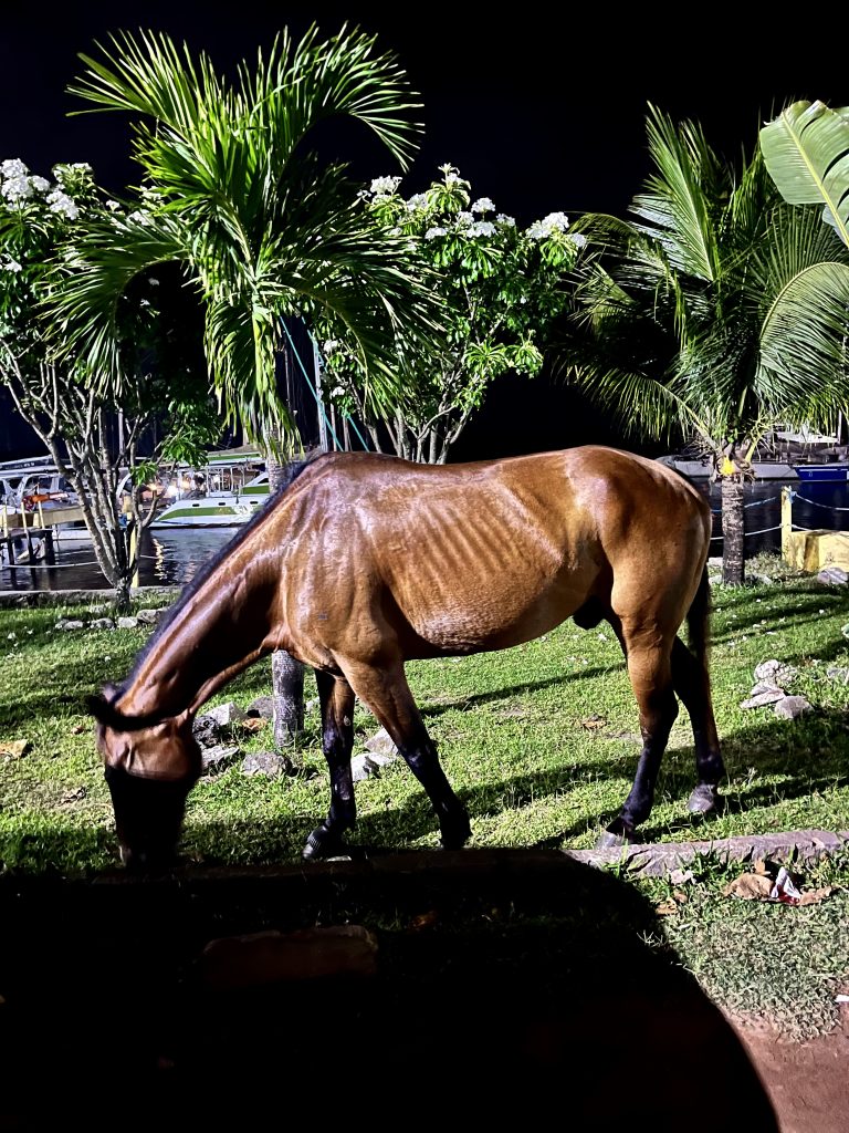 Und danach schauen wir noch einen Tatort. „Das Paradies“ mit Murot, ein wirklich skurriler Fall, aber nicht übel, während die Pferde des nachts frei herumlaufen und nach Gras suchen. Selbstversorgung ist hier angesagt. Viel scheinen sie nicht zu finden, die Rippen sind deutlich zu erkennen.