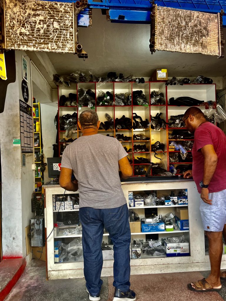Das Ausklarieren ist heute etwas mühsamer. Der Zollmeister, ein Hektiker vor dem Herren, kommt kaum dazu unsere Papiere fertigzumachen, vor lauter Herumgespringen, Kakerlakenfangen und Schimpfen über Bauarbeiter… Am Ende möchte er dann aber noch unbedingt ein Selfi mit Klaus und mir. Na dann… Nachdem wir vollständig ausklariert sind, möchte unser Fahrer noch in den Gassen von João Pessoa nach einem Ersatzteil suchen. Wir zuckeln mit. Was auch sonst?