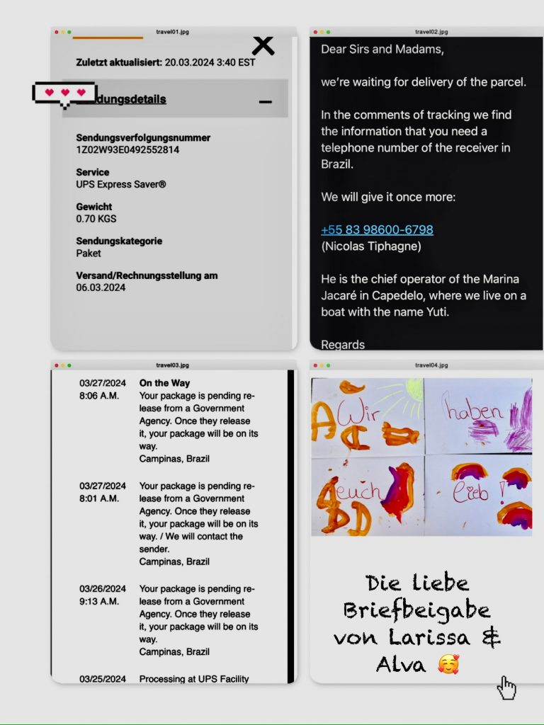 Kein Aprilscherz, meine Kreditkarte ist da. 🥳 Ich kann es kaum glauben!!! Die DKB sperrte sie vor Monaten aus mir unerfindlichen Gründen und schickte eine neue an unsere Adresse in Altrip, die dann wiederum bei Larissa landete. Ich nahm dann Kontakt zur DKB auf, was schwierig und sehr schlecht verlief, und mit der Aussage endete, wir verschicken Karten nur nach Deutschland. Wumms! Diese Aussage war natürlich falsch, aber das vorläufige Ende vom Lied war, wir baten unsere Tochter meine Karte nach Brasilien zur Marina zu schicken. Mit allen erforderlichen Angaben schickte sie sie vor 4 Wochen los und bezahlte 75,- Euro für den Expressversand. Die Aufgabe wurde UPS übergeben und nahm dann ihren Verlauf… Nico wurde als Adressat informiert, wir gingen auf Reisen und die Karte erreichte den brasilianischen Zoll in São Paulo. Da hing sie dann für viele Tage fest. Es erreichte uns die Nachricht, der Zoll verlange 100,- Euro Gebühren. 😳 Wow, so viel?! Wir informierten Nico, der sofort sagte, das sei unverschämt und illegal. Wir sollten sie doch wieder zurückschicken lassen. Umpf 😓. Nee, wir wollen sie doch gerne haben, da bei ihr keinerlei Gebühren bei Geldabhebungen und Bezahlvorgängen anfallen. Ob er die 100 Euro auslegen könnte? Ja, kein Problem, mache er sofort. 👍 Tage später hieß es dann, nun warte man noch auf die Unterschrift einer staatlichen Behörde. Toll! Und das war’s dann. Wir kamen zurück, Ostern kam, die Karte kam nicht und blieb beim Zoll verschollen. Und nun ist Ostermontag und ich bekomme doch noch ein Osterei❣️😁