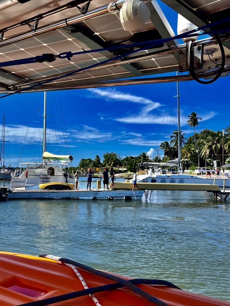 Wir verabschieden uns noch von dem anderen deutschen Boot, von Birgit, ihrem Mann und ihren 2 Kindern, die hier jetzt 5 Monate verbracht haben und legen gegen 14:40 Uhr ab.