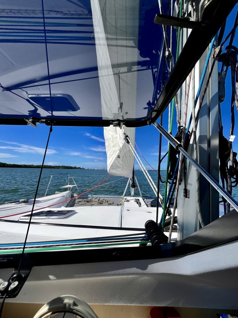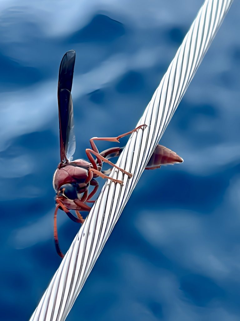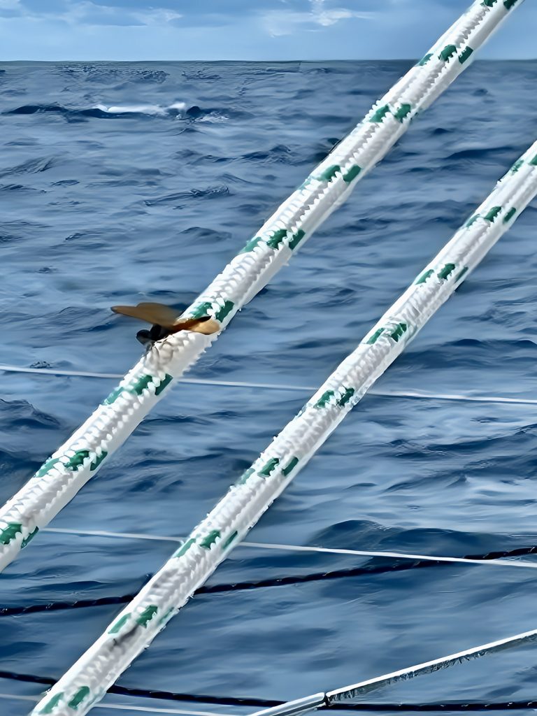 Ich kämpfe wacker gegen die fliegende Übermacht, da bekommt Klaus die Nachricht, dass wir uns JETZT gegen Denguefieber impfen lassen können, Impfstoff ist wieder da. Lustig!!! Zu spät 🫤! Vielleicht impfen uns gleich die Insekten… Doch als sie merken, dass es hier nichts zu holen gibt, verduften sie wieder. 😅 Zwischenzeitlich hat der linke Motor genug Energie produziert und wir schalten den Motor aus. Es ist Samstag und Klaus erreicht in Vietnam, bei Seawind, natürlich niemanden mehr, um wegen des Ladeproblems nachfragen zu können. Klaus schreibt ne Mail, wir segeln weiter… ⛵️…