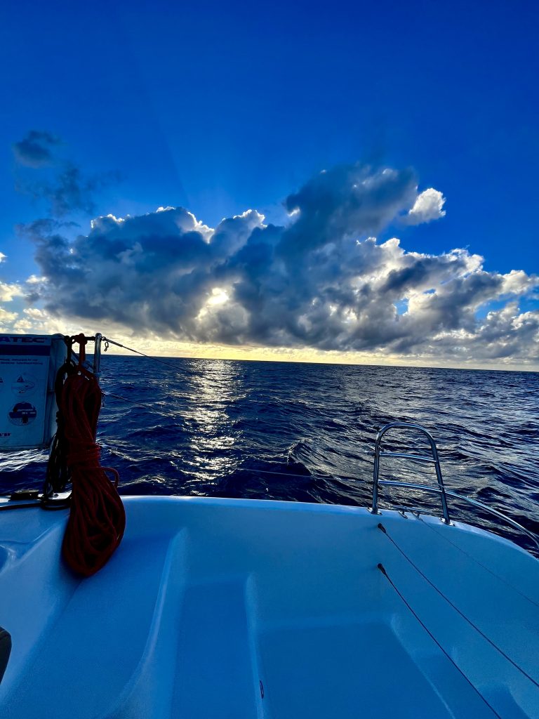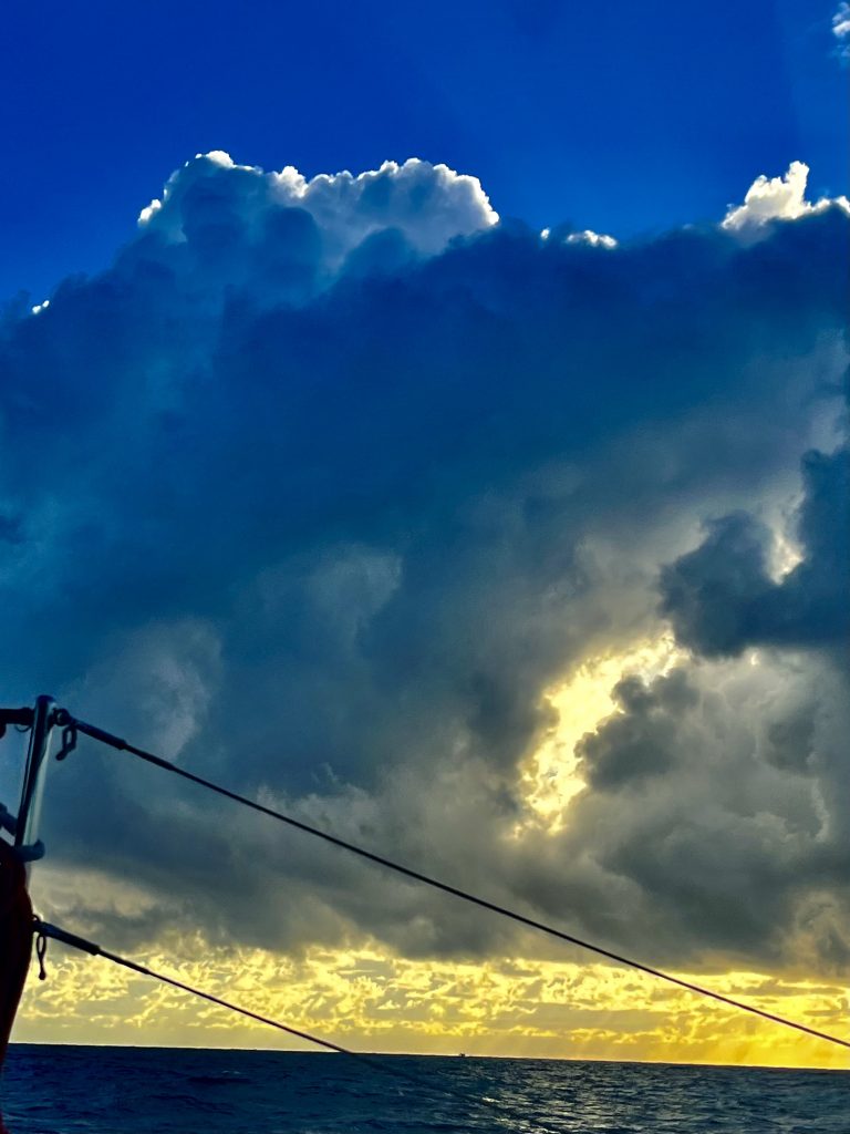 Ich bin happy❣️Wir sind wieder auf dem Meer, schippern gemütlich dem Sonnenuntergang und neuen Zielen entgegen, haben viel Proviant, Diesel und Wasser an Bord, mein Fuß tut nicht mehr weh und das Boot ist repariert und sauber. Und der Fahrtwind verschafft uns Abkühlung. Auch Klaus ist zufrieden, beide freuen wir uns auf diese, unsere vorerst längste Passage. Wir genießen den Moment❣️