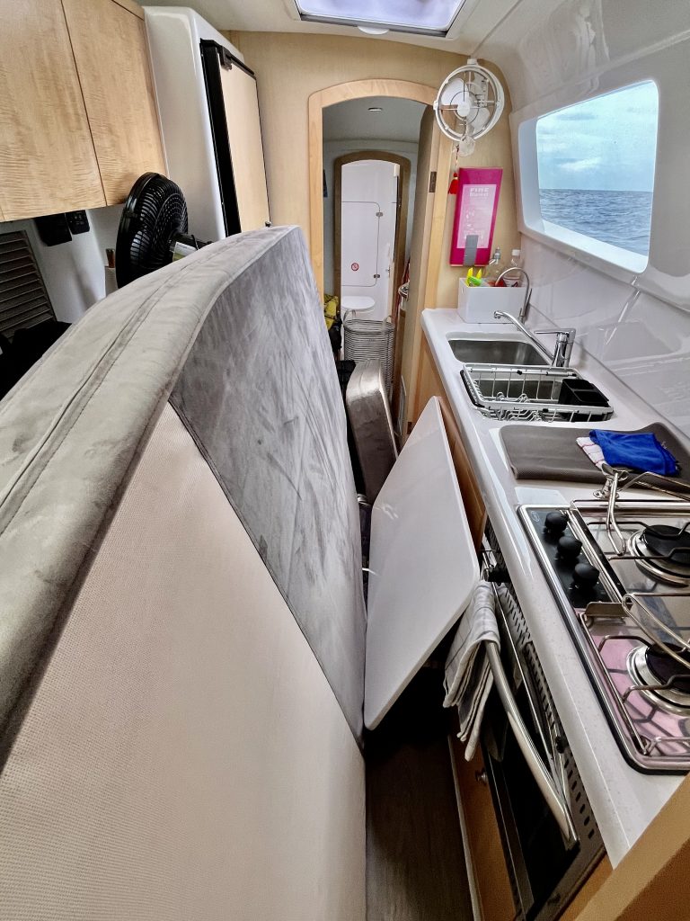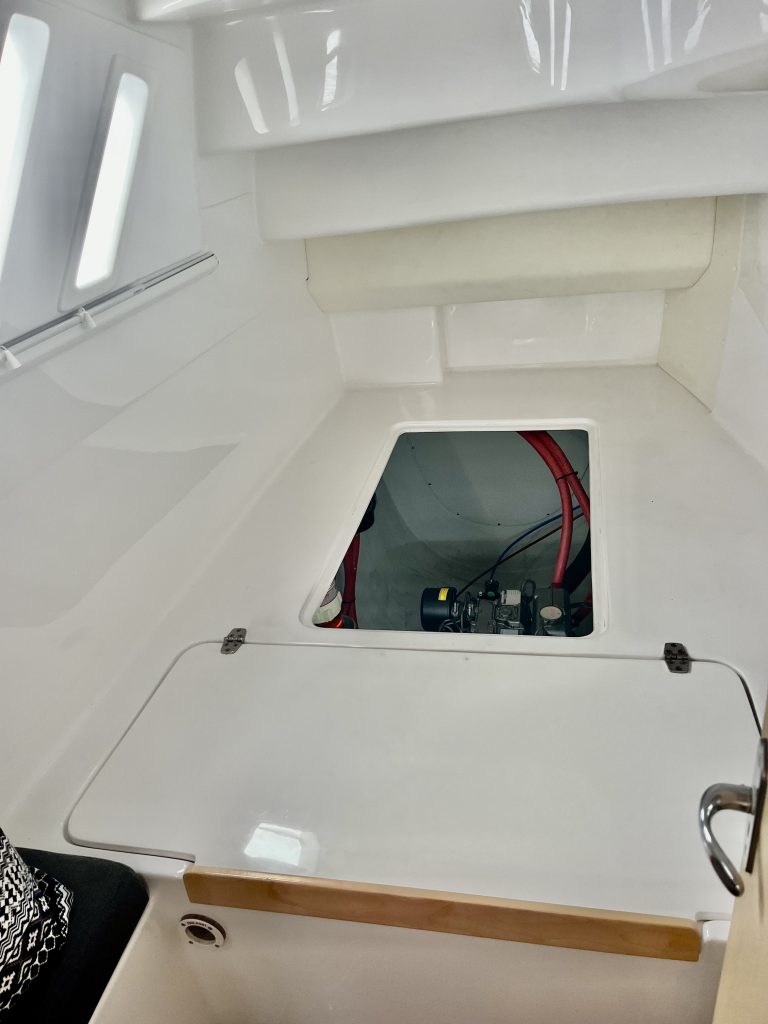 Mal nach wenigen Sekunden, mal auch erst nach einer Viertelstunde, nach Starten des Motors. Diese Zeit ist nun aber mehr als verstrichen. Zum Test und Strom erzeugen, schaltet Klaus den linken Motor dazu. Jepp, nach ein paar Minuten schaltet sich die Lichtmaschine ein und produziert Strom. Das ist schon mal gut. 👍 Nun muss er sich mal den Motor zur Rechten genauer anschauen. Oh je, dann muss ich ja wohl oder übel die Gästekabine leerräumen.