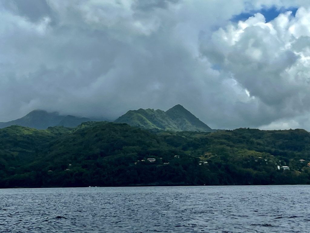 Wir nähern uns deutlich, zu sehen ist aber um 8:00 Uhr noch nichts von Grenada. Eine Dreiviertelstunde später heißt es dann freudig, Land in Sicht!