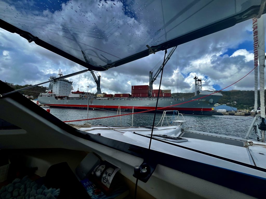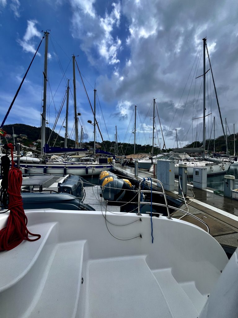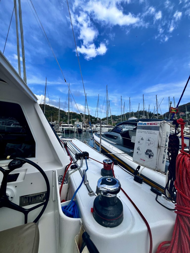 Um 15:00 Uhr liegen wir sicher vertäut am Marinasteg. Auch wenn es zuvor ein paar Missverständnisse galt auszuräumen. Nein an den fetten Betonsteg wollen wir nicht und nein, wir kommen für eine Woche, nicht für 5 Monate! Und so bekamen wir dann einen wunderbaren Platz am Steg, unweit sämtlicher wichtigen Gebäude. Save und happy düst Klaus gleich darauf zu Customs und Immigration, alles hier in der Marina 👍, Habourmaster braucht’s nicht und schlussendlich zum Marina-Office. Strom und Wasser werden freigeschaltet. Prima 👌!