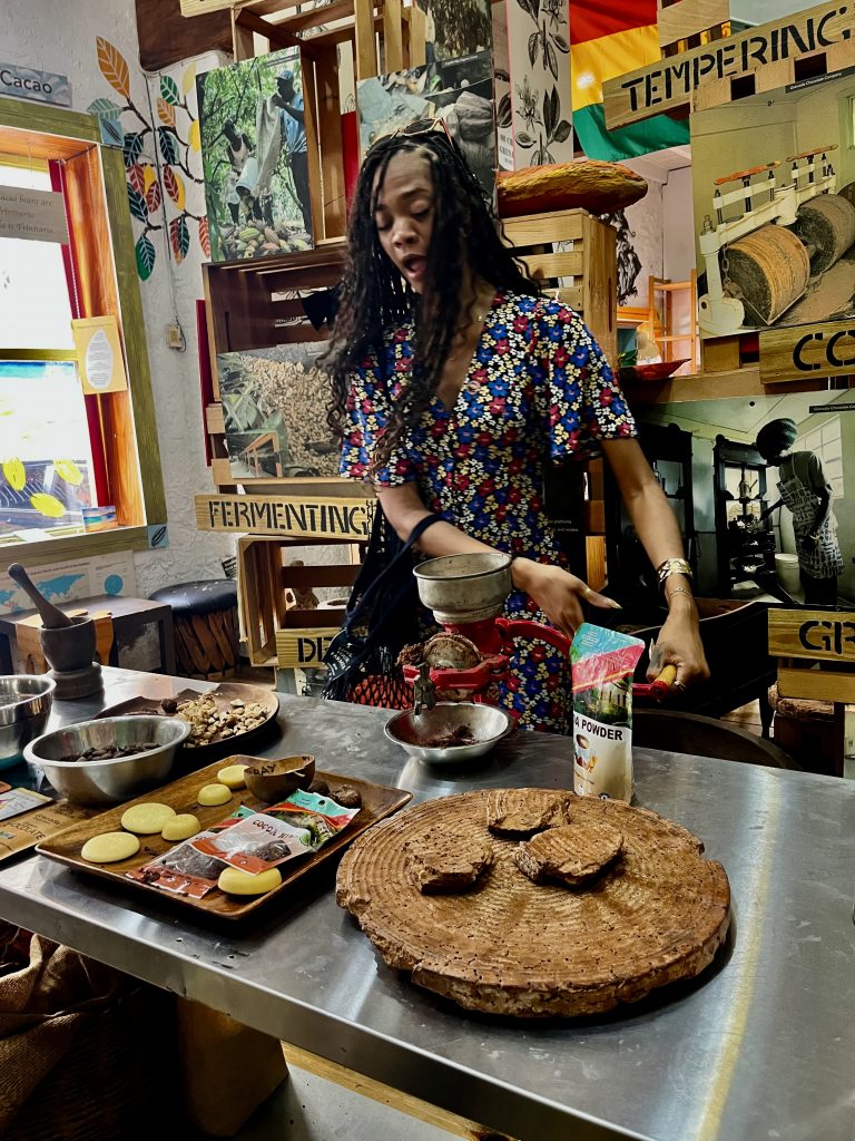 Leckerste Schokoladenprodukte sind im Angebot, und eine sehr nette Mitarbeiterin zeigt uns den Weg von der Kakaobohne zur Schokolade. Auch dabei dürfen wir kosten und selber Hand anlegen.