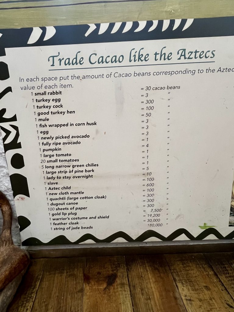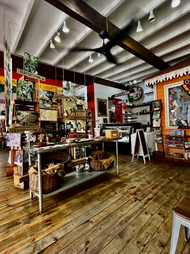 Alle Schokoladen werden aus heimischem Anbau hergestellt und eine Kakaobohne mal pur geknabbert, schmeckt auch nicht übel. Ansonsten gibt es hier noch so allerlei Hübsches zu entdecken, und verschiedene Bilder und Plakate klären zusätzlich über den vergangenen Wert einer Kakaobohne und damalige Produktionsabläufe auf.