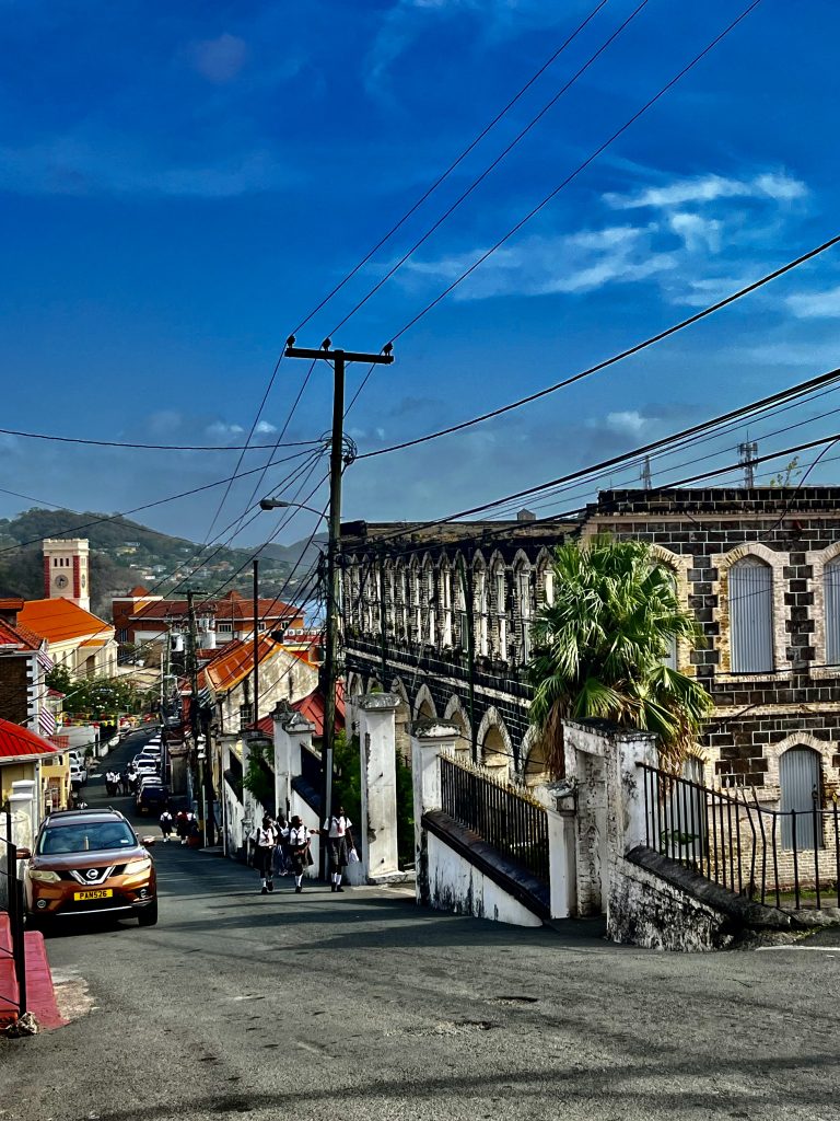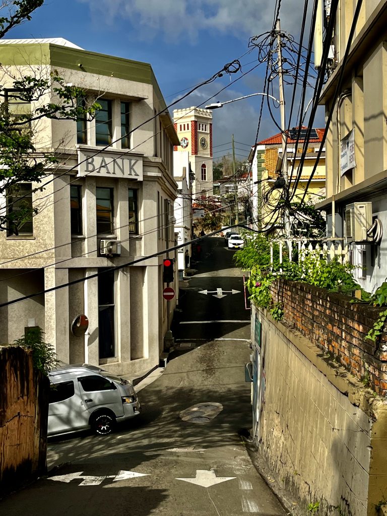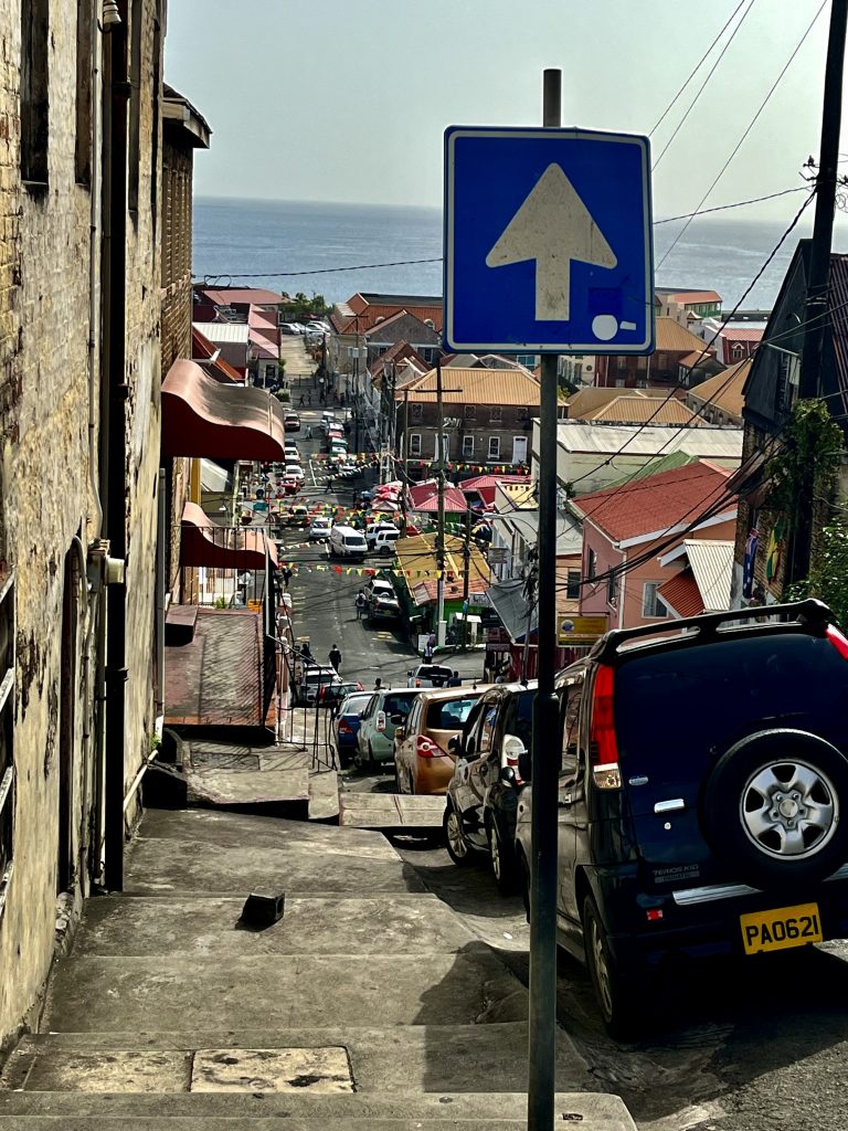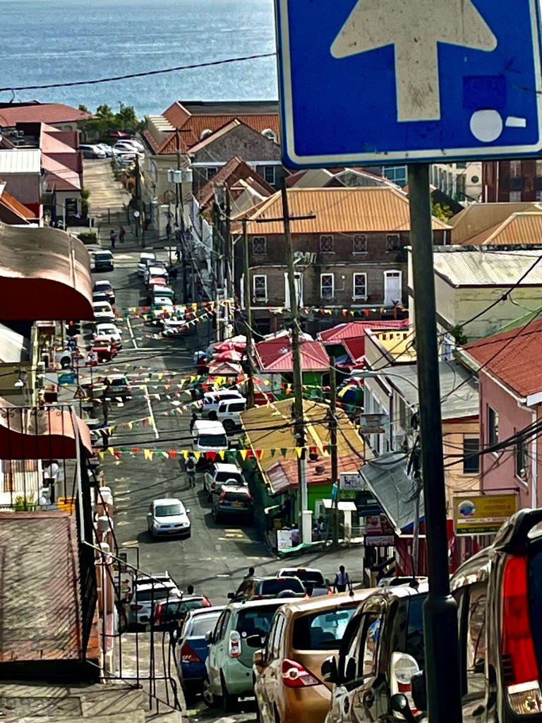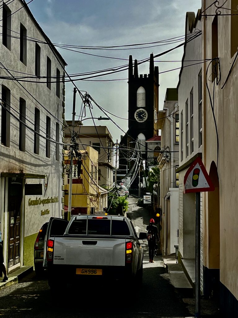 Die Straßen in Saint George verlaufen abenteuerlich, hoch und runter und sehr schmal. Man muss schon aufpassen, dass man nicht von einem vorbeisausenden Autospiegel mitgerissen wird.