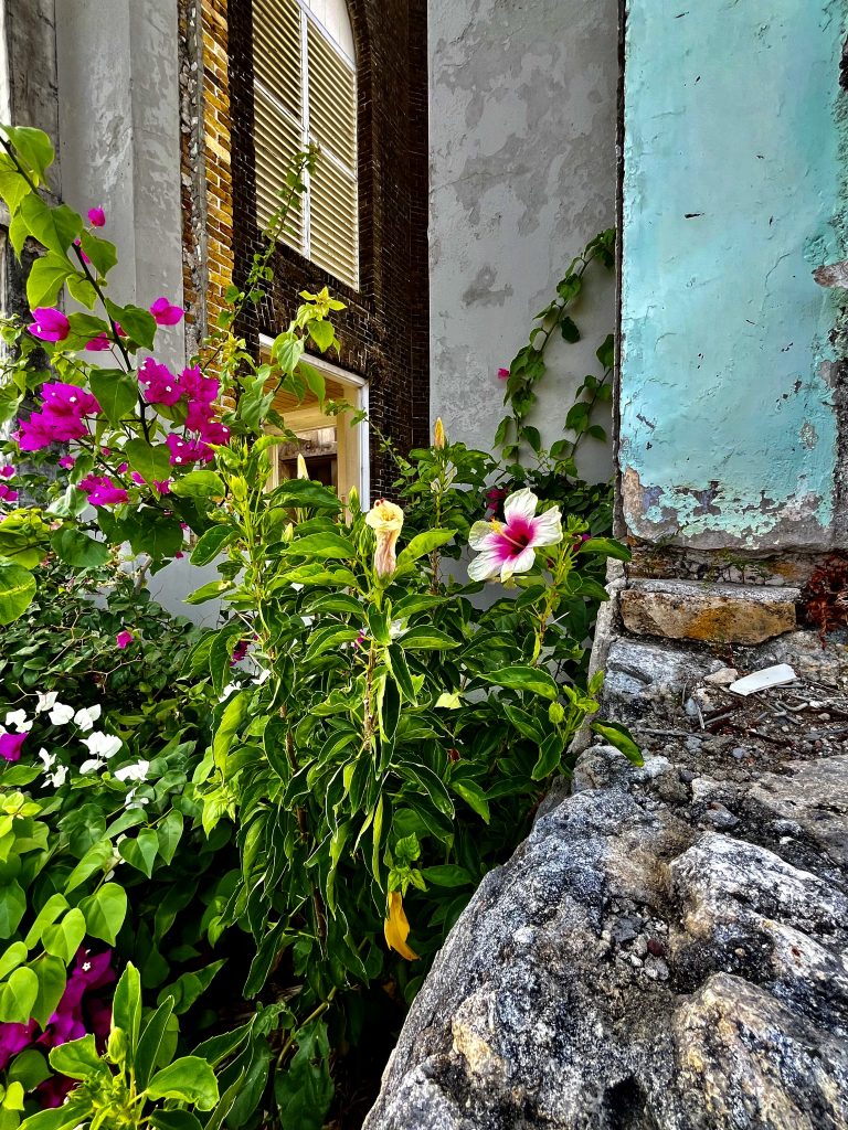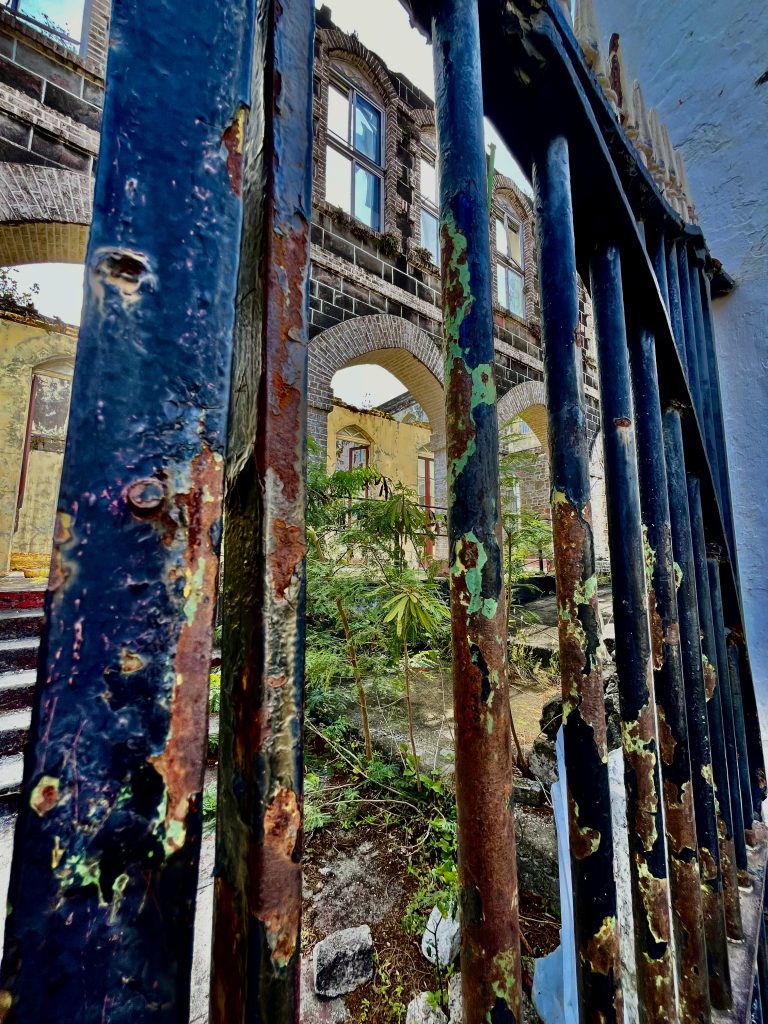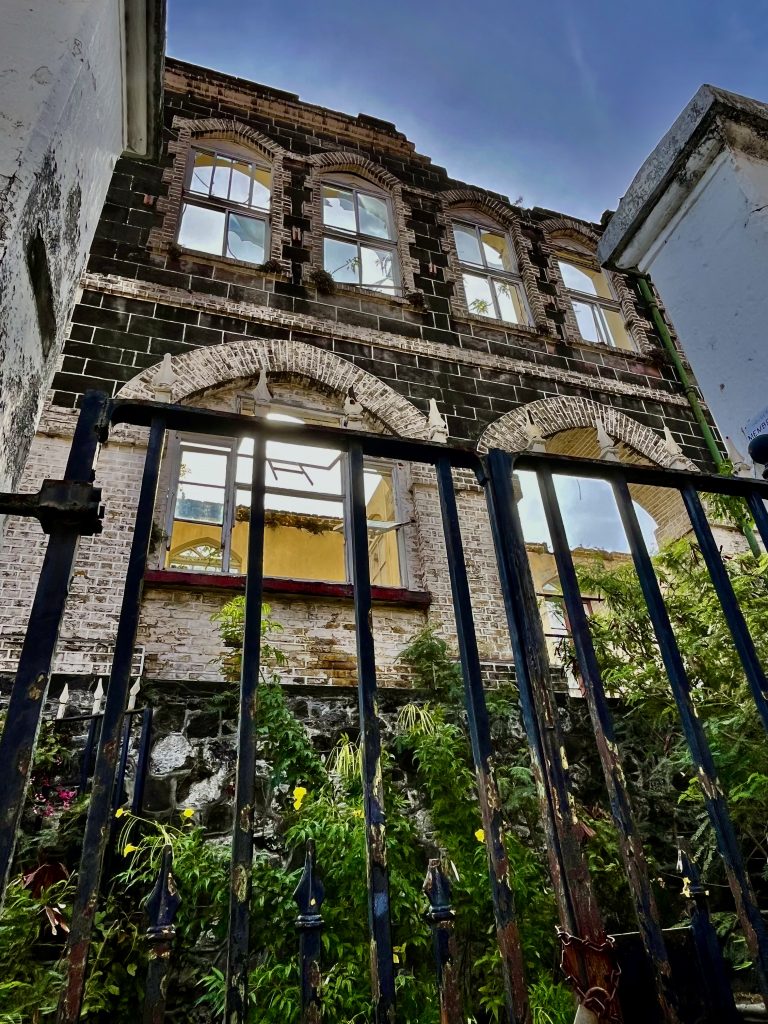 Sie thront auf einem Hügel mit toller Aussicht, von Bougainvillea umrankt und wird langsam aber sicher restauriert. Das nebenstehende Fort George ist komplett eingehüllt und wird bearbeitet.