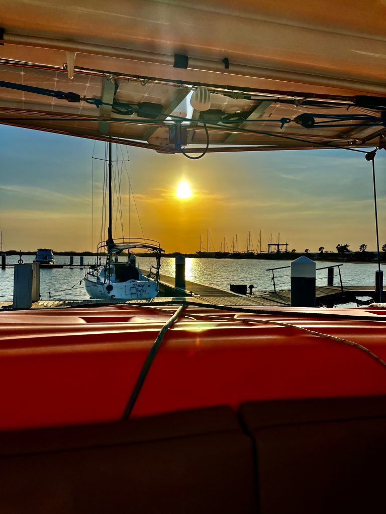 Es ist sehr übersichtlich, sehr sauber und aufgeräumt. Besonders alt kann die gesamte Anlage noch nicht sein, aber richtig fertiggeworden ist sie auch nicht. Also angemeldet sind wir schon mal. ✅ Morgen geht es mit dem Einklarieren weiter. Zurück am Boot versuchen zwei Marinos uns an Strom und Wasser anzuschließen. Das mit dem Wasser ist nicht so das Problem, aber der Strom wehrt sich noch. Hier ist alles auf 110 Volt eingestellt, das US amerikanische System. Es wird ordentlich geprokelt und Klaus muss immer wieder ausprobieren, ob wir die erforderlichen 220 Volt nun haben. Ich schaue mir mal den Tachostand an. Schlussstand des Tachos sind 14.848 NM. Da kommen also zu den 89 Meilen um 9:00 Uhr, nochmals 35 Meilen dazu. Addiere ich alle Meilen zusammen, dann haben wir uns von Grenada bis hierher 840 Seemeilen ersegelt. Das ist dann ja doch deutlich weniger, als wir erwartet hatten. Also der Stromanschluss passt immer noch nicht und wird auf morgen verschoben. Nicht schlimm, sind unsere Batterien doch vom Motoren noch randvoll. Morgen soll dann laut Louis ein Elektriker vor Ort sein. Okay. 👍