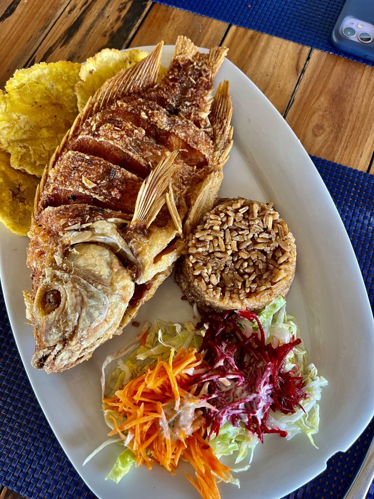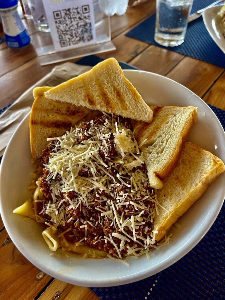 Später versuchen wir per Uber in den nächst größeren Ort zu kommen, um mal etwas Landeswährung zu besorgen und den dortigen Supermarkt zu besuchen. Wir warten, warten, warten und warten, aber jeder Fahrer kickt uns nach kurzer Zeit wieder raus. Niemand will in diese Einöde fahren. Mist! Ähhhh…, sind wir jetzt hier gefangen und kommen nie mehr weg?? Hat uns Louis nur hier hingelockt, und jetzt war’s das? Er meinte noch, Bargeld bräuchten wir hier nicht, das geht alles auf eine große Rechnung am Schluss. 🤔 Na dann gehen wir mal essen und verlängern die Rechnung… Ach nee, das können und sollen wir ja direkt per Kreditkarte bezahlen.