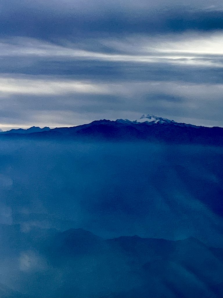 Der Flug startet mehr als pünktlich und verläuft problemlos. Ich sitze doch tatsächlich mal am Fenster und kann sie sehen, die Anden mit ihren schneebedeckten Spitzen. Fantastisch!