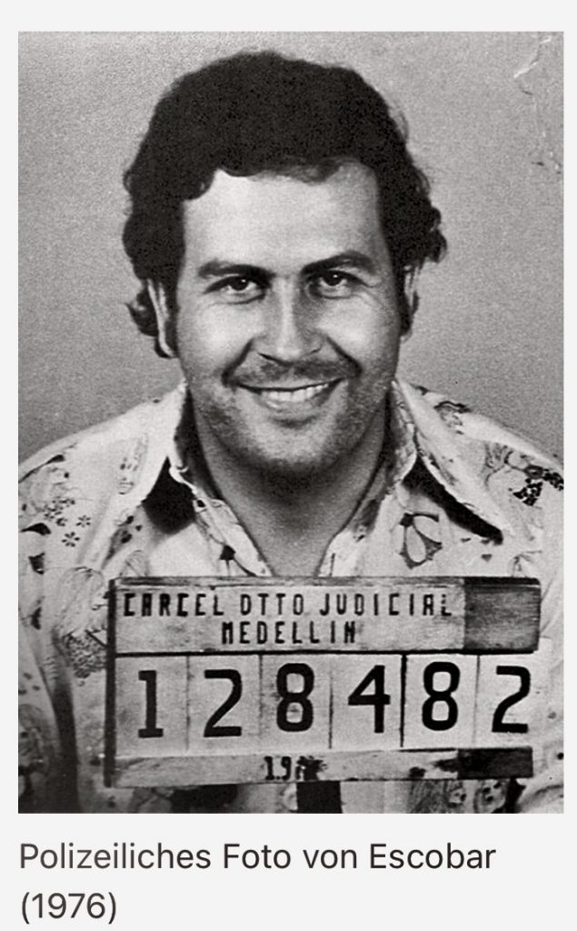 Escobar entzog sich immer wieder erfolgreich der Strafverfolgung, indem er durch Auftragsmörder, 457 Polizisten und 30 Richter töten ließ. Sein geläufiges Motto hieß, Silber oder Blei, Plate o Plomo, Geld oder Tod! Er stellte sich mehr und mehr als Vertreter einer neuen reichen Mittelschicht dar und zog 1978 sogar als Abgeordneter in den Stadtrat von Medellín ein, erlangte dadurch auch Immunität. 1982 wurde er Kongressmitglied der liberalen Partei und galt als moderner Robin Hood. Er sorgte für Schulen, Krankenhäuser und Sozialwohnungen. Auch galt er als liebevoller Ehemann und Vater. Nebenbei wurde er der erfolgreichste Kokainhändler der Welt. 80 Prozent des kolumbianischen Marktes wurde von ihm beherrscht. Den Rest teilten sich das Cali-Kartell und andere… Ab 1984 spitzte sich die Auseinandersetzung mit den Strafverfolgungsbehörden zu. Mit Unterstützung der USA wurde sein Hauptdrogenlabor zerstört. Nach dem Drogentod eines US-Basketballstars 1986, kippte die Stimmung ihm gegenüber, vom Vertreter des Inbegriffs des Zeitgeistes hin zum Schwerstkriminellen. 1988, mit der Präsidentschaft von George W. Bush Senior, wurden Millionen in den Kampf gegen den kolumbianischen Drogenhandel gesteckt. Escobar führte daraufhin einen regelrechten Krieg gegen die Justiz, mit Bombenanschlägen und unzähligen Morden. 1991 lenkte er nach Friedensverhandlungen kurz ein und begab sich freiwillig ins Luxusgefängnis „La Catedral“. Nach Verlegungsplänen floh er erfolgreich. Doch seine Gegner ließen nicht nach, zerstörten seine Labore, töteten seine Türsteher, Auftragsmörder und Sicherheitsleute. Escobar bekam Geldprobleme, konnte seine Leute nicht mehr bezahlen, das Cali-Kartell übernahm seine Position. Monate später wurde er am 2. Dezember 1993 von einer US-amerikanischen-kolumbianischen Eliteeinheit erschossen, als ein Anruf zu seinem Sohn zurückverfolgt werden konnte. Er versuchte noch barfuß übers Dach zu entfliehen, zu spät! Die Ironie an der Geschichte war, dass über das nun herrschende Cali-Kartell mehr Kokain die USA flutete als je zuvor !