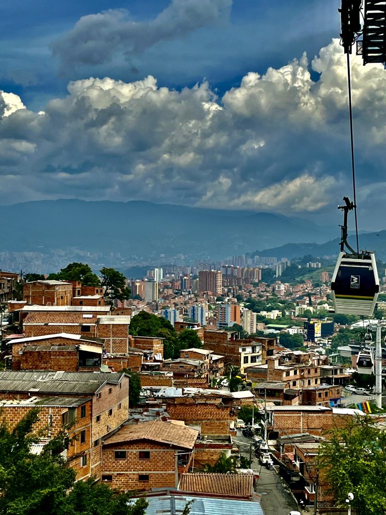 Medellín verfügt mittlerweile auch über ein gutes öffentliches Verkehrsnetz. Dazu gehören Buslinien und sehr beachtlich, diverse Seilbahnen, die die 16 Stadtteile, die sich zum Teil an den vielen Berghängen emporschlängeln, miteinander verbinden. Für einen Dollar kann man sich innerhalb des Netzes solange bewegen und soweit fahren wie man will. Es gibt keine Gruppenrabatte und keine Enfernungswaben wie bei uns, die alles verkomplizieren, es kostet einen Dollar für jeden und fertig ✔️. So einfach kann’s gehen.