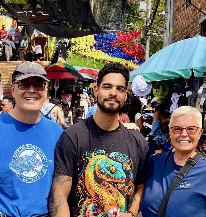 Gaston, 51 Jahre, Venezulaner, lebte 1 Jahr im Saarland, spricht prima Deutsch und ist für uns ein Glücksfall❣️Auch morgen wird er uns an die Hand nehmen. Jippie!! Jetzt geht’s erstmal mit dem Auto durch Medellín. Übrigens, es regnet nicht mehr❣️