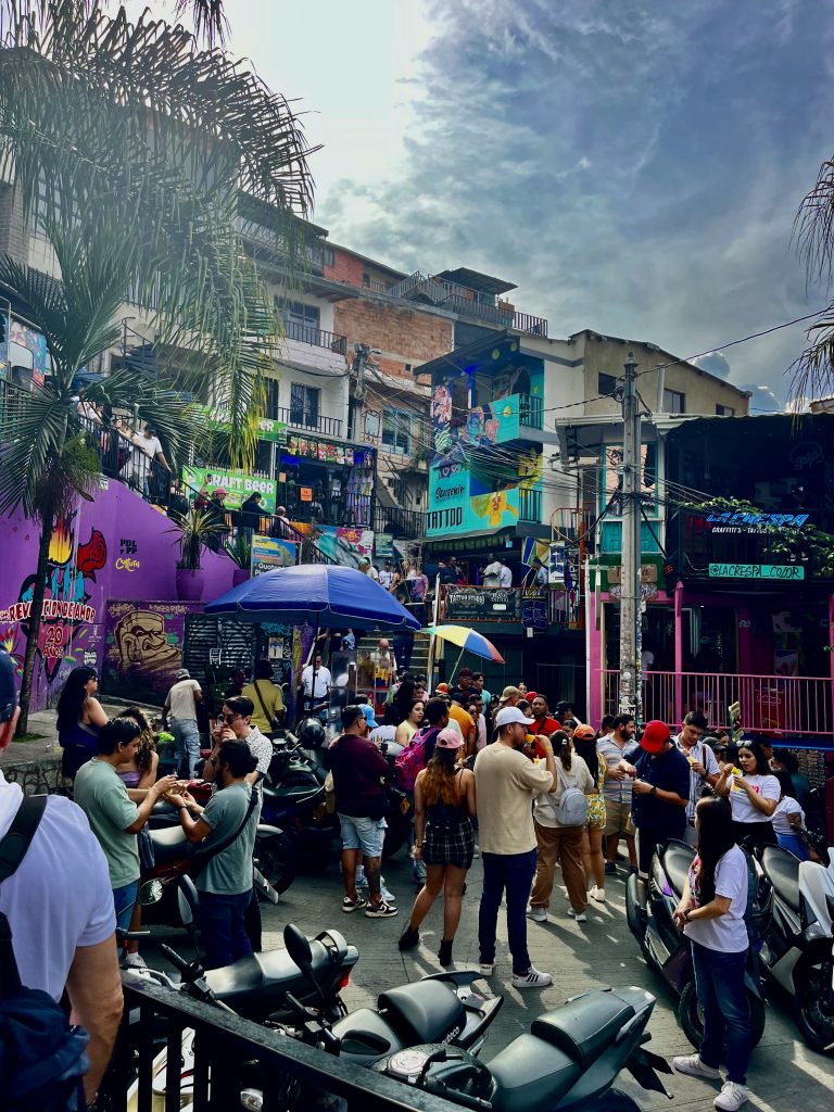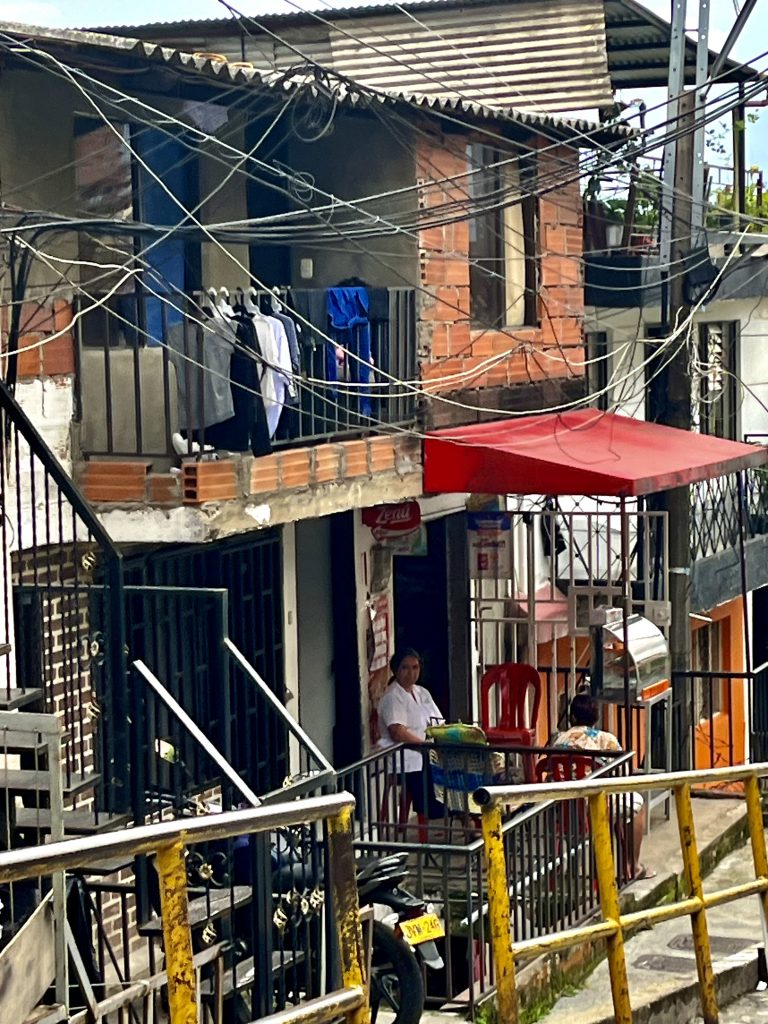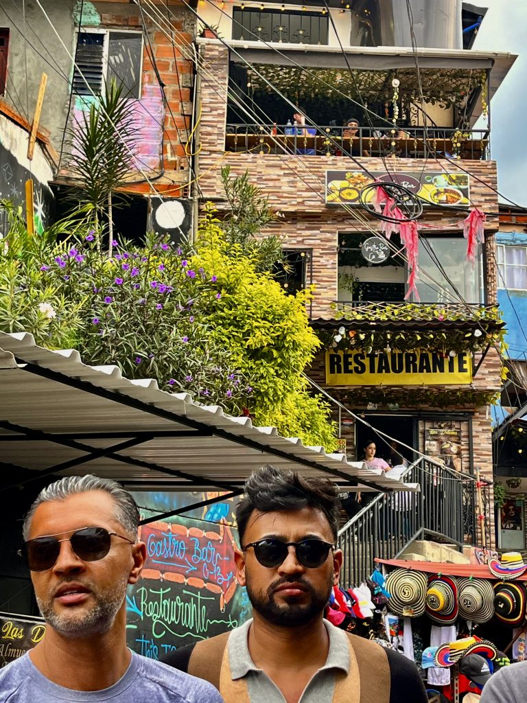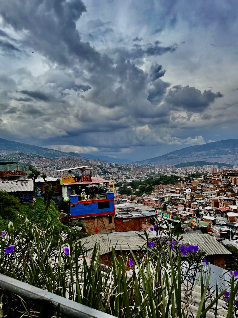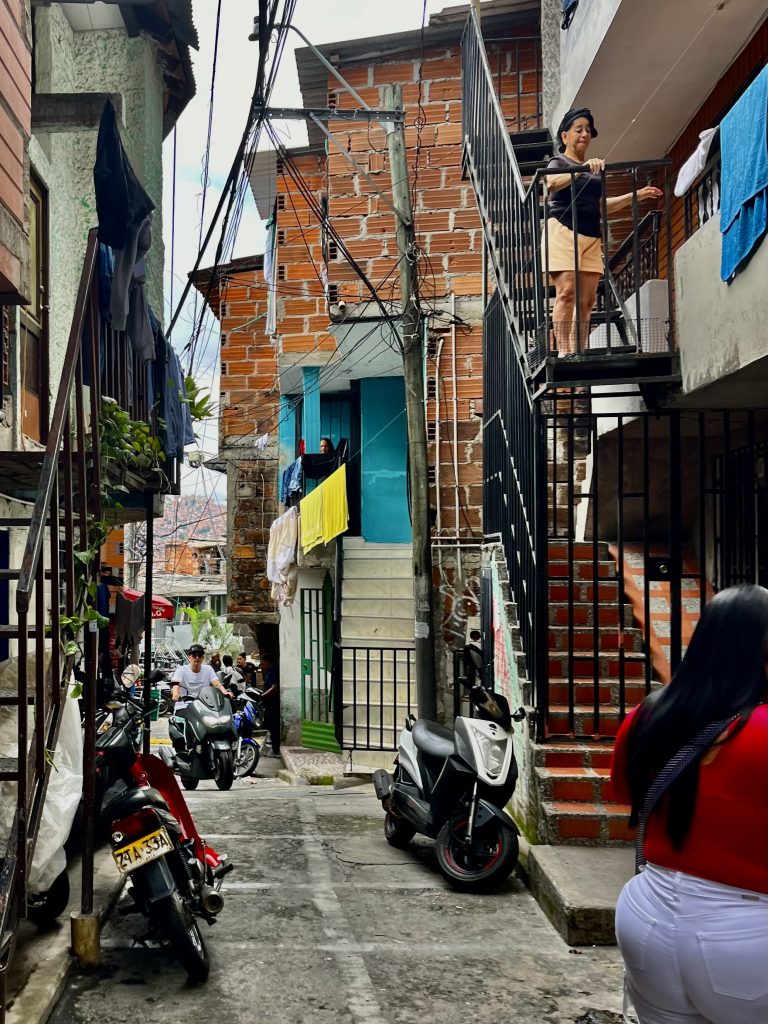 Wir sind oben angekommen, mit der Gondel. 🚠 Schon hier, am Beginn der Comuna 13, empfängt uns ein Gewusel von Menschen UND Brian, 27 Jahre alt und einer, der das Grauen noch voll mitbekommen hat.