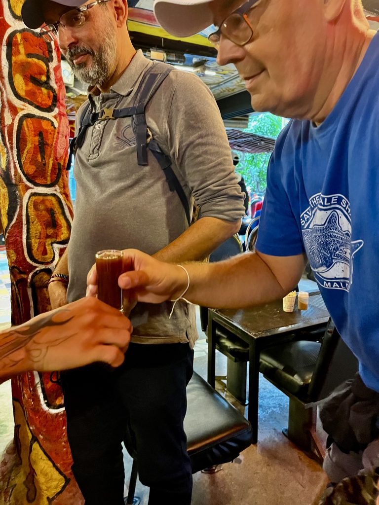 Und dann testen wir ein In-Getränk in Chota‘s Bar, Kaffee mit Limonade. What??? 😳