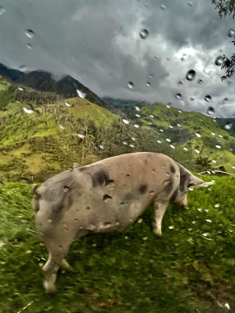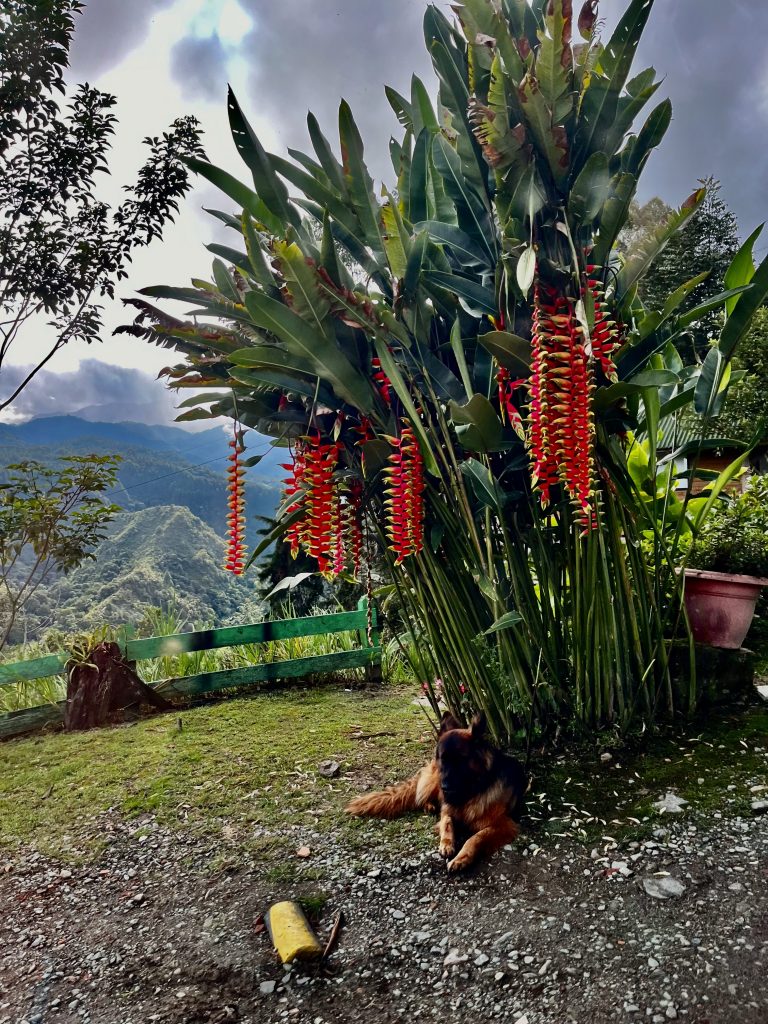 Das ist nicht der erst Schäferhund, den wir sehen. Ich fasse zusammen: Holsteiner Kühe und deutsche Schäferhunde sind in Kolumbien weit verbreitet. Also ist es hier schon fast wie zu Hause… 😄.