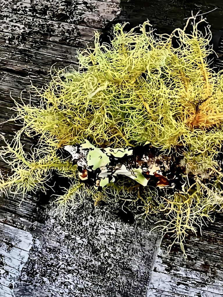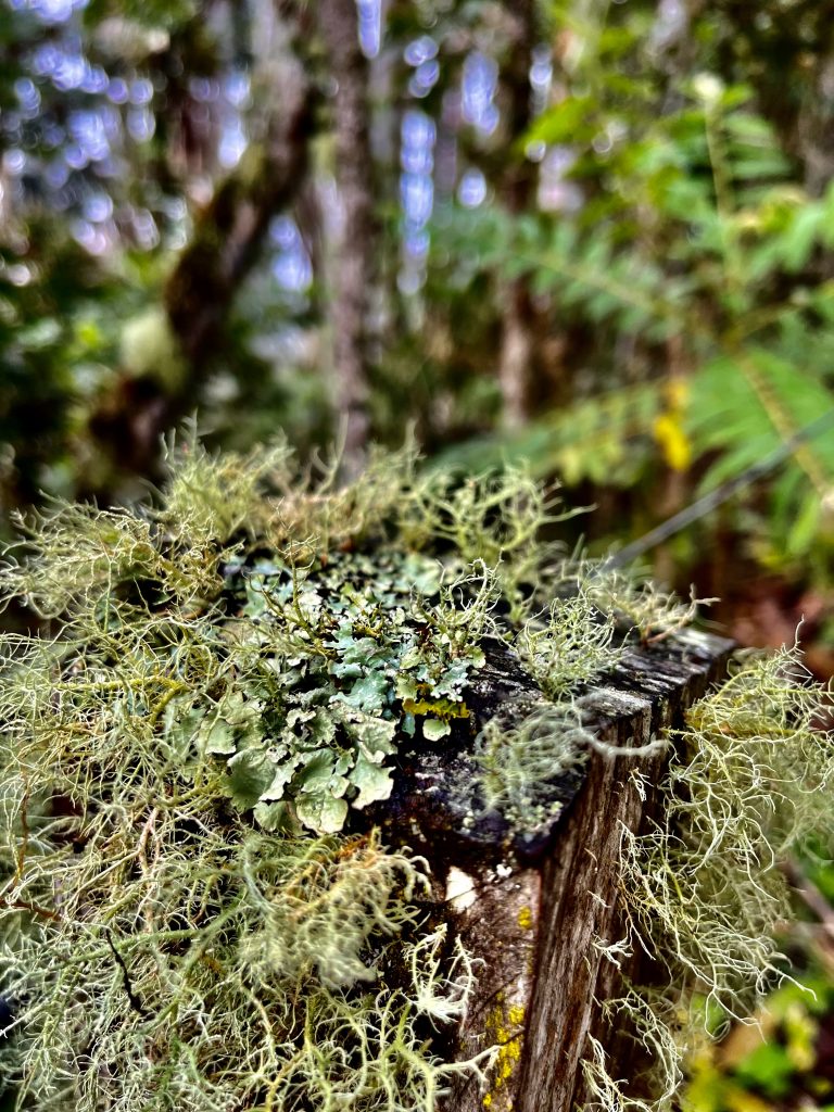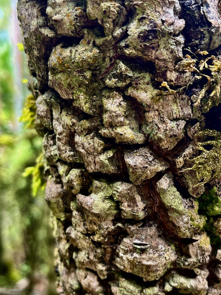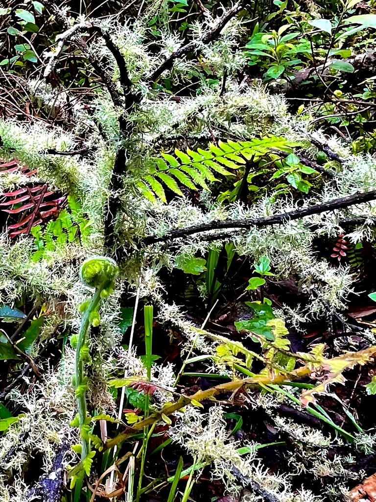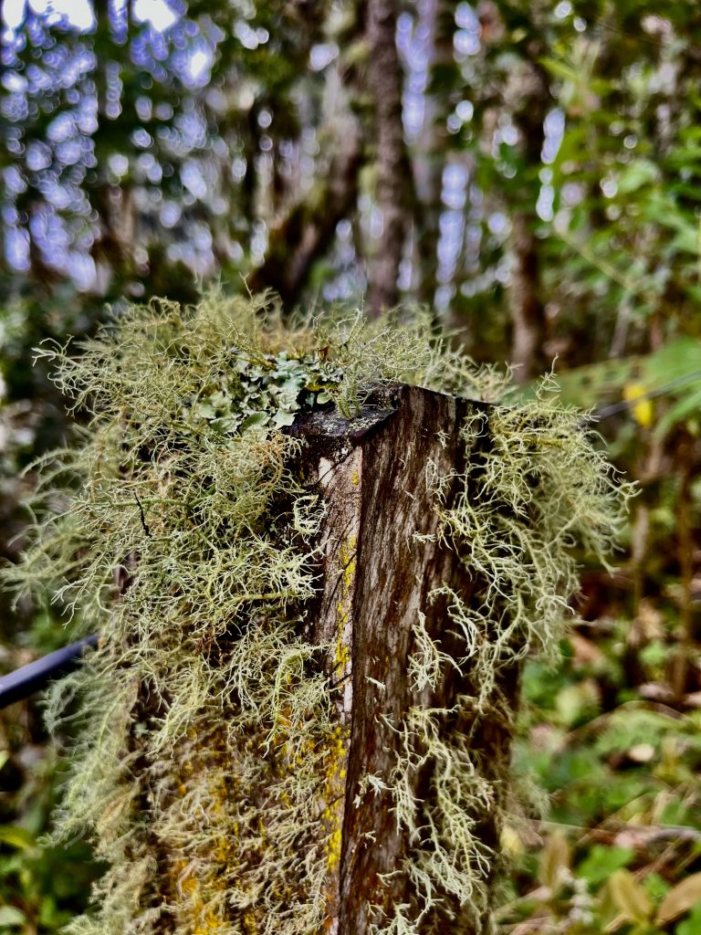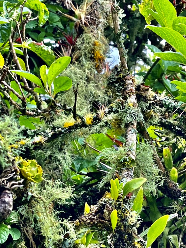 Die Zweige der Bäume sind dermaßen bemoost und bewachsen, dass man sie kaum noch erkennen kann.