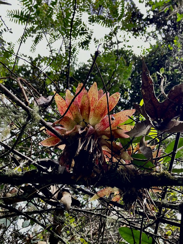 Bromelien wachsen auf ihnen und gedeihen prächtig.