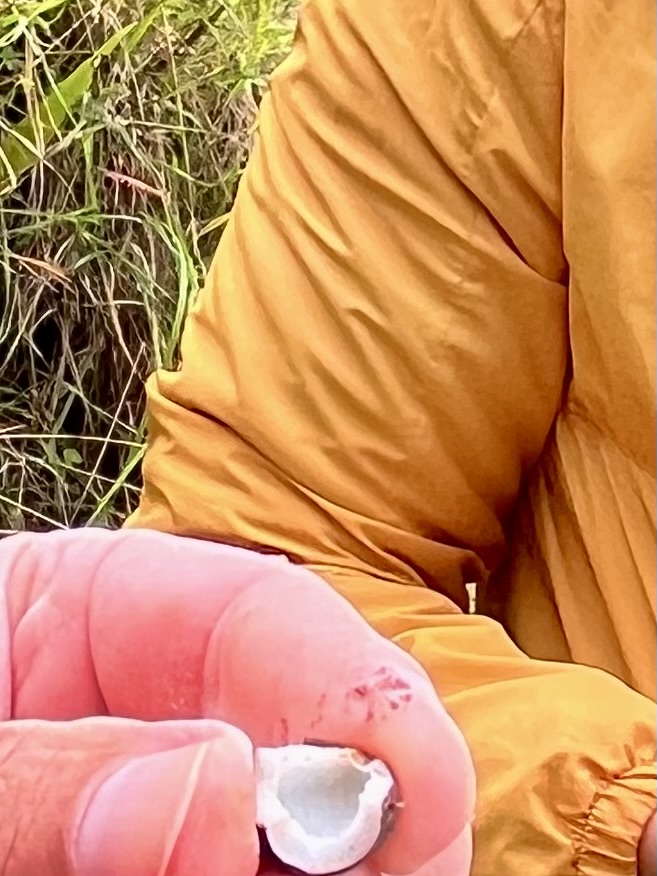Da könnte jetzt die Frage aufkommen, warum mein Gesicht brauner ist als Klaus’? Ganz einfach, Klaus läuft immer mit Kappe herum, um seine empfindliche Pläte zu schützen. Das muss ich nicht 😆, und so kann die Sonne ungehindert auf mein mit Lichtschutzfaktor geschütztes Gesicht treffen.