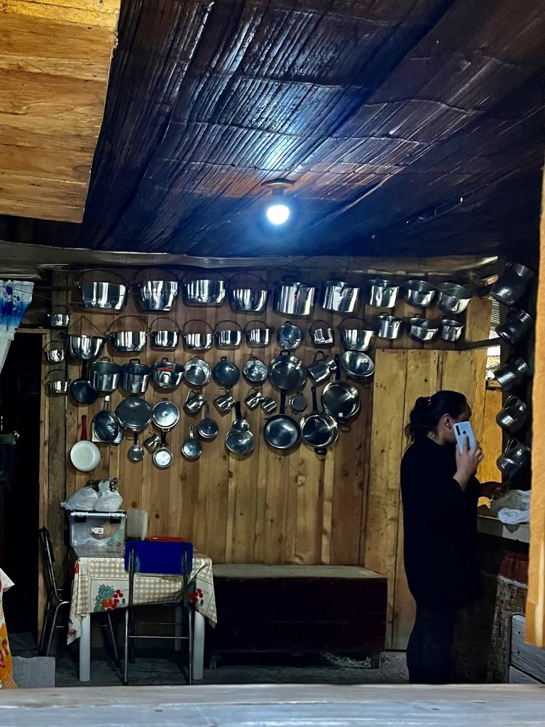 Jetzt sind wir fast im Tal und werden in einem einfachen Gasthaus zu Mittag essen. Sie wissen Bescheid, dass wir kommen.