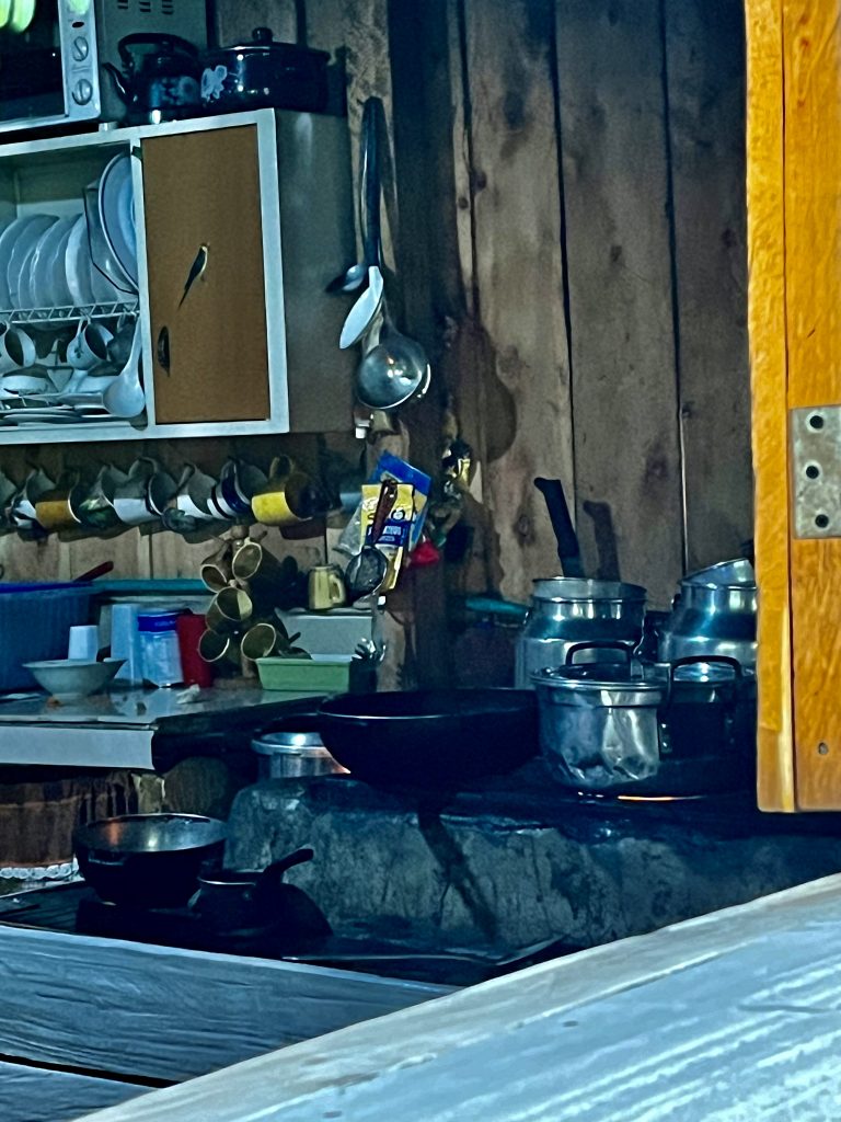 Dann wird nach Unverträglichkeiten gefragt, es liegen keine bei uns Vieren vor, und die Chefin der Hütte macht sich umgehend am Herd zu schaffen.