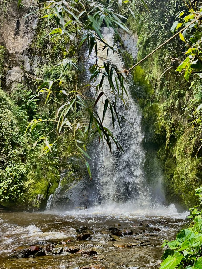 Bis das Essen fertig ist, dürfen wir noch mal ein paar glitschige Stufen abwärtsrutschen, um einen Wasserfall in Augenschein zu nehmen. Wenn’s unbedingt sein muss… ?! Okay, es gehen alle, dann ich halt auch.