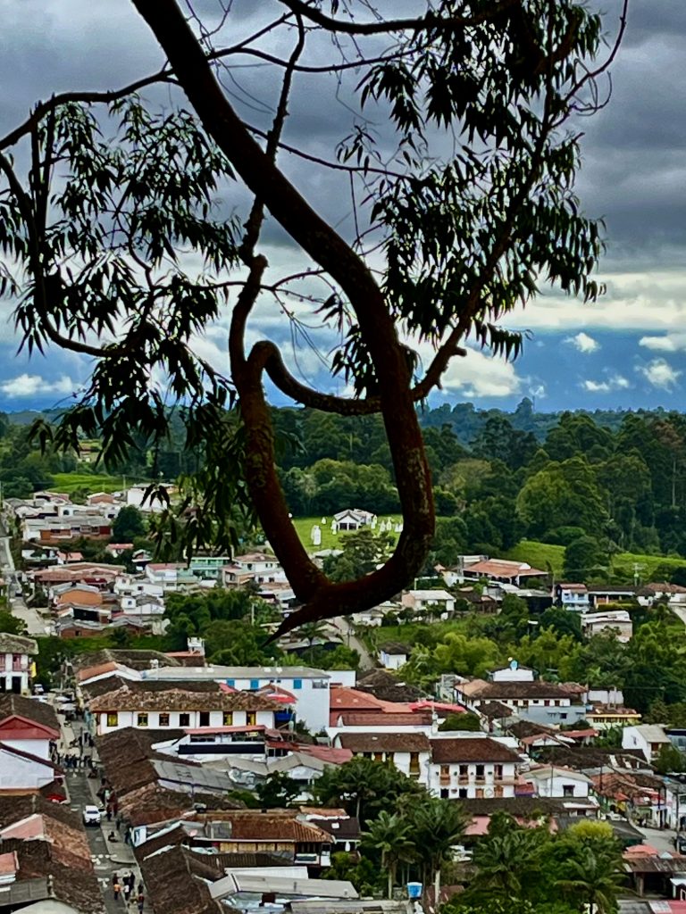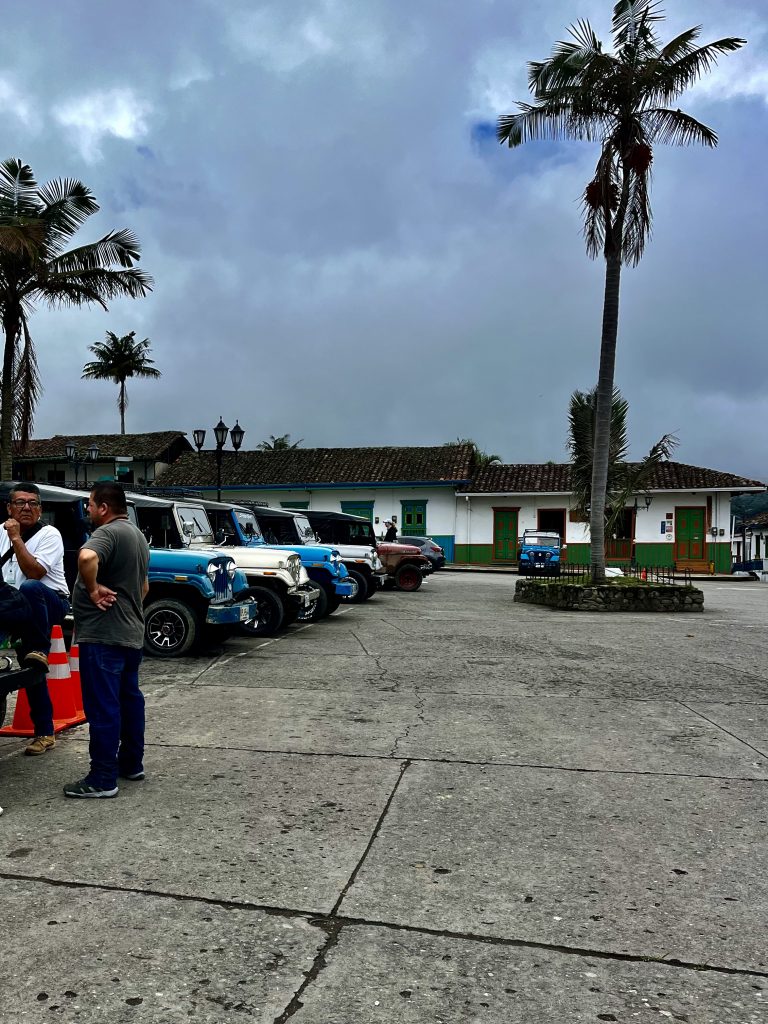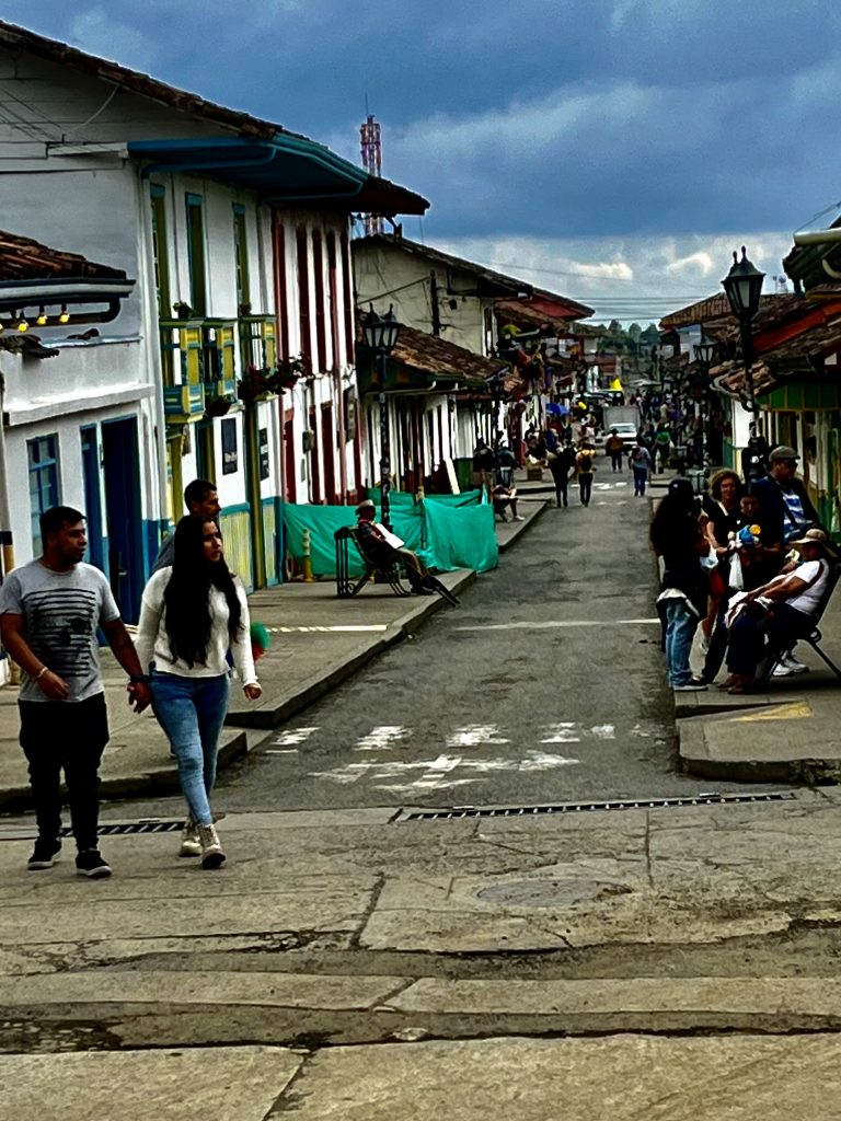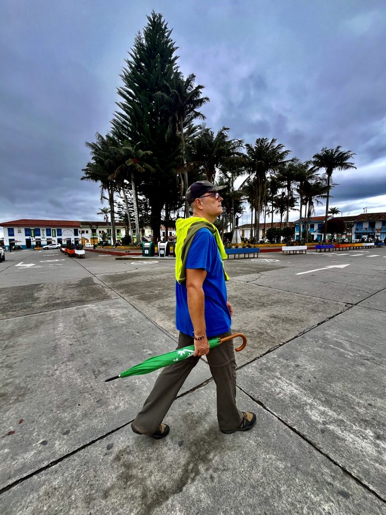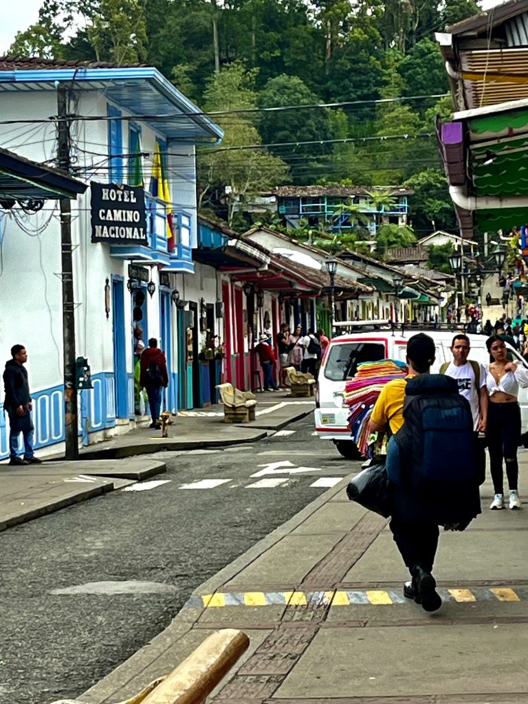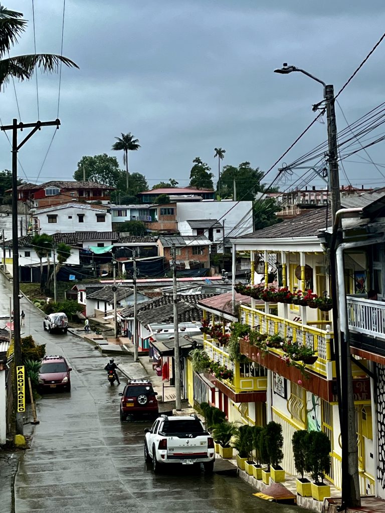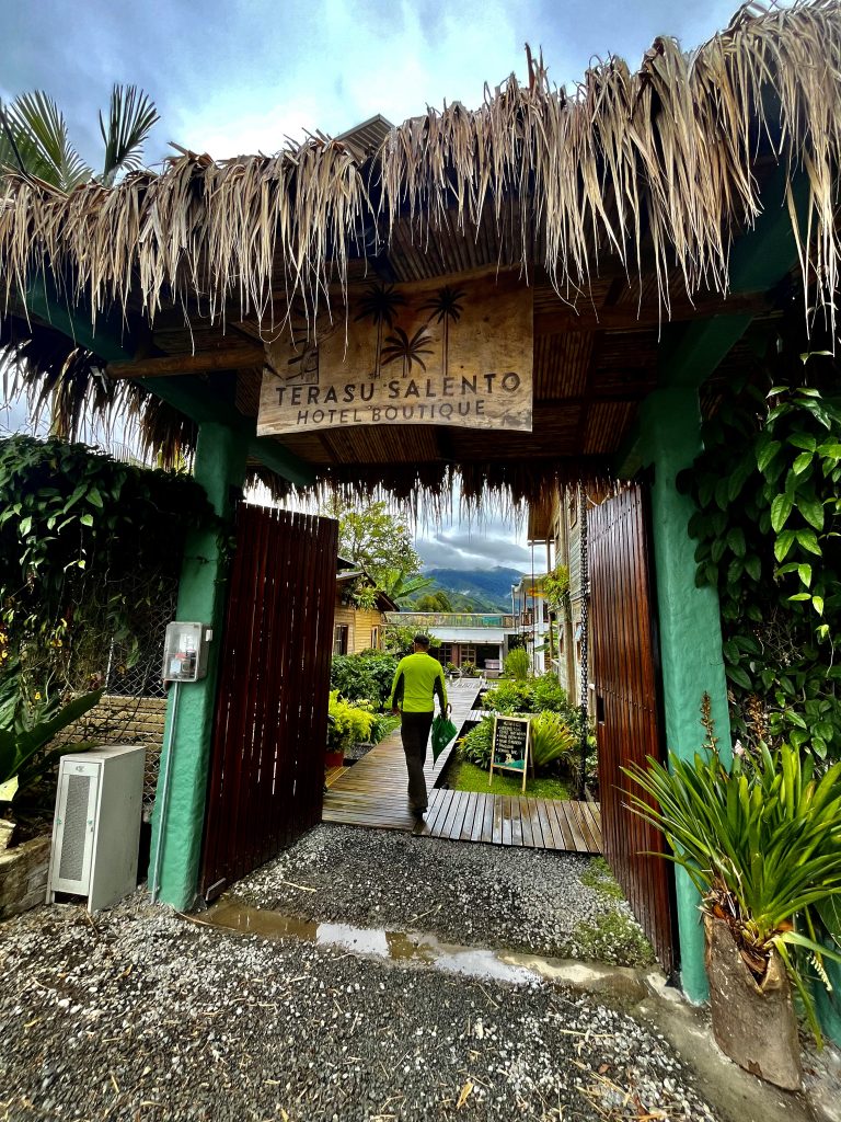 Salento liegt 1.895 Meter hoch, zwischen dem östlichen und mittleren Andenstrang. Es kommt mir vor wie auf einer Basisstation im Himalayagebirge. Hier sammelt sich alles, um dann zu den gut geplanten Unternehmungen aufzubrechen. Sei es mit dem Pferd, dem Rad oder einem Willy hoch in die Berge vorzustoßen, um ins Valle de Cocora, ins Tal der Wachspalmen zu gelangen. Da bläht sich der Ort schnell von etwa 4.500 Einwohnern auf zigtausend Besucher auf. Im Jahr besuchen weit mehr als 1 Million Touristen diesen Ort. Aber, wir sind ja in der Regenzeit hier, da ist es nicht ganz so wuselig. Der Ort ist natürlich entsprechend präpariert. Es gibt unzählige Souvenir-Shops, Hotels und ein Restaurant neben dem anderen.