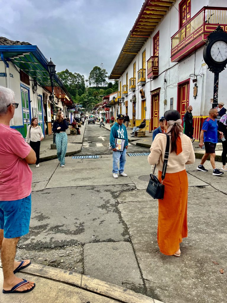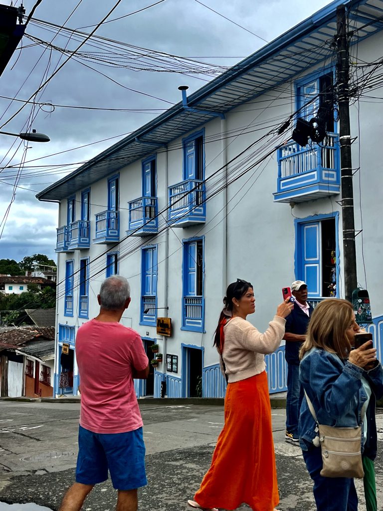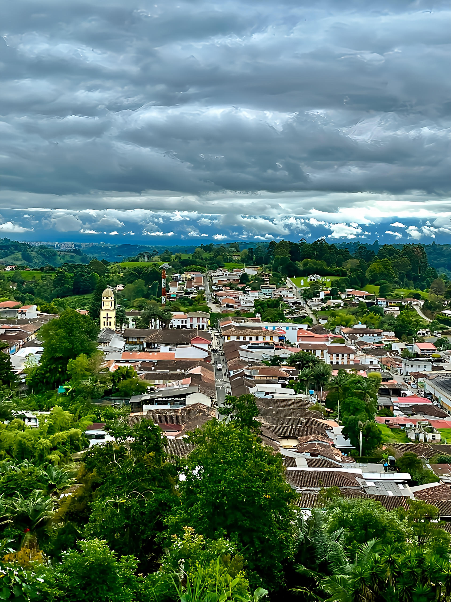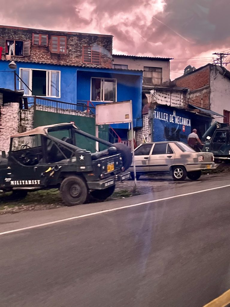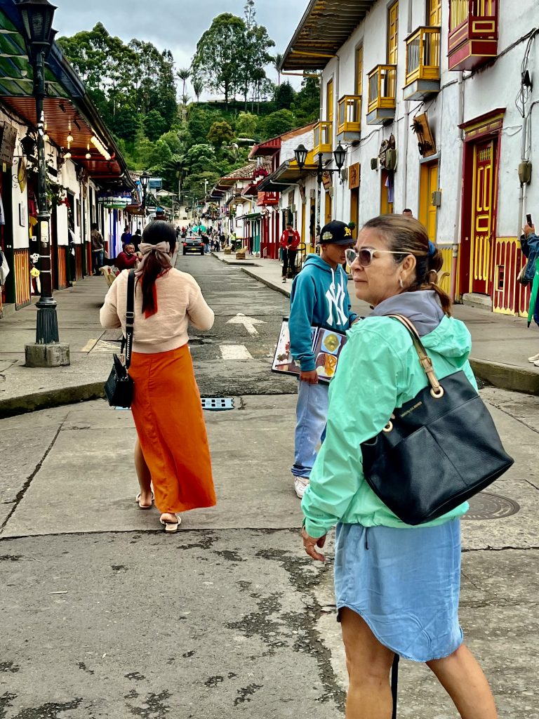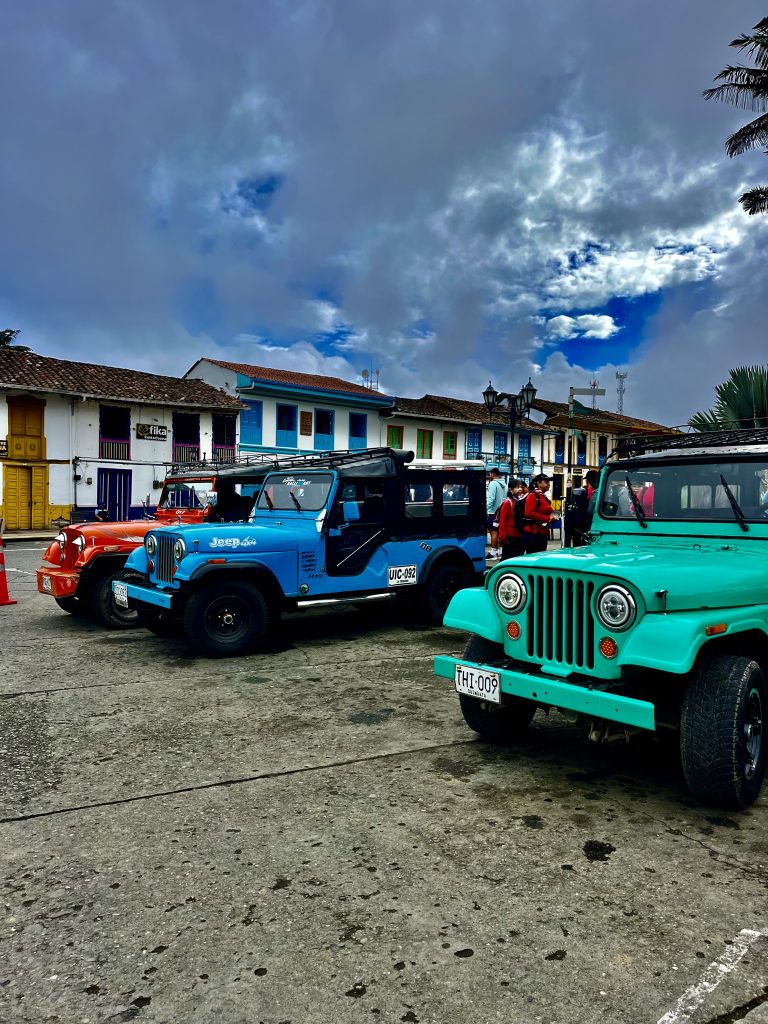 Salento liegt 1.895 Meter hoch, zwischen dem östlichen und mittleren Andenstrang. Es kommt mir vor wie auf einer Basisstation im Himalayagebirge. Hier sammelt sich alles, um dann zu den gut geplanten Unternehmungen aufzubrechen. Sei es mit dem Pferd, dem Rad oder einem Willy hoch in die Berge vorzustoßen, um ins Valle de Cocora, ins Tal der Wachspalmen zu gelangen. Da bläht sich der Ort schnell von etwa 4.500 Einwohnern auf zigtausend Besucher auf. Im Jahr besuchen weit mehr als 1 Million Touristen diesen Ort. Aber, wir sind ja in der Regenzeit hier, da ist es nicht ganz so wuselig. Der Ort ist natürlich entsprechend präpariert. Es gibt unzählige Souvenir-Shops, Hotels und ein Restaurant neben dem anderen.