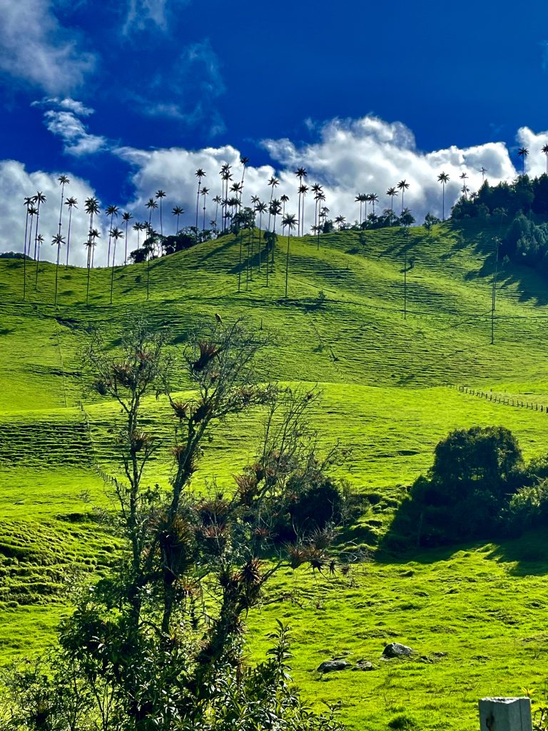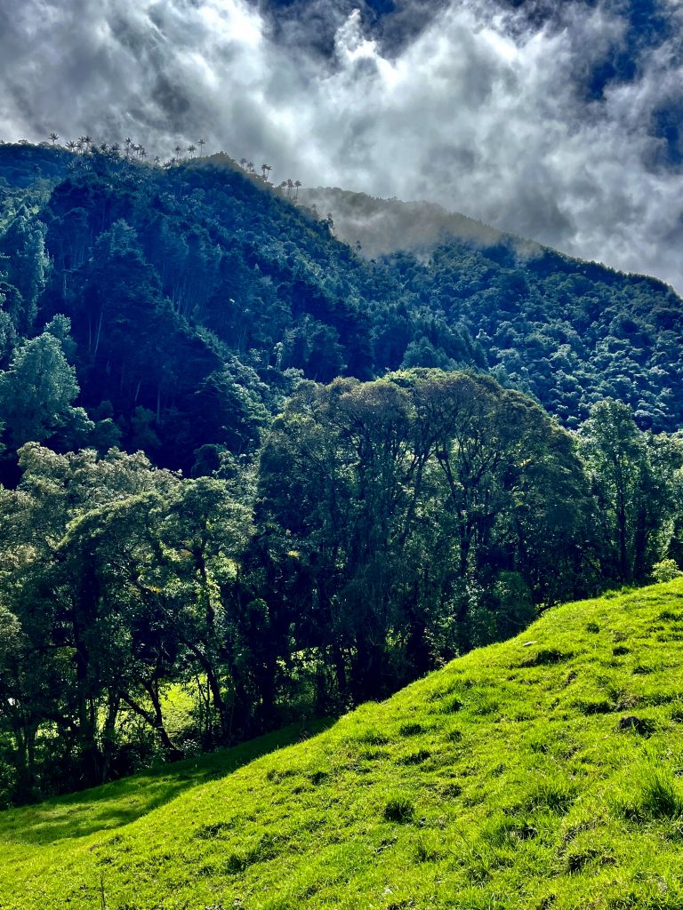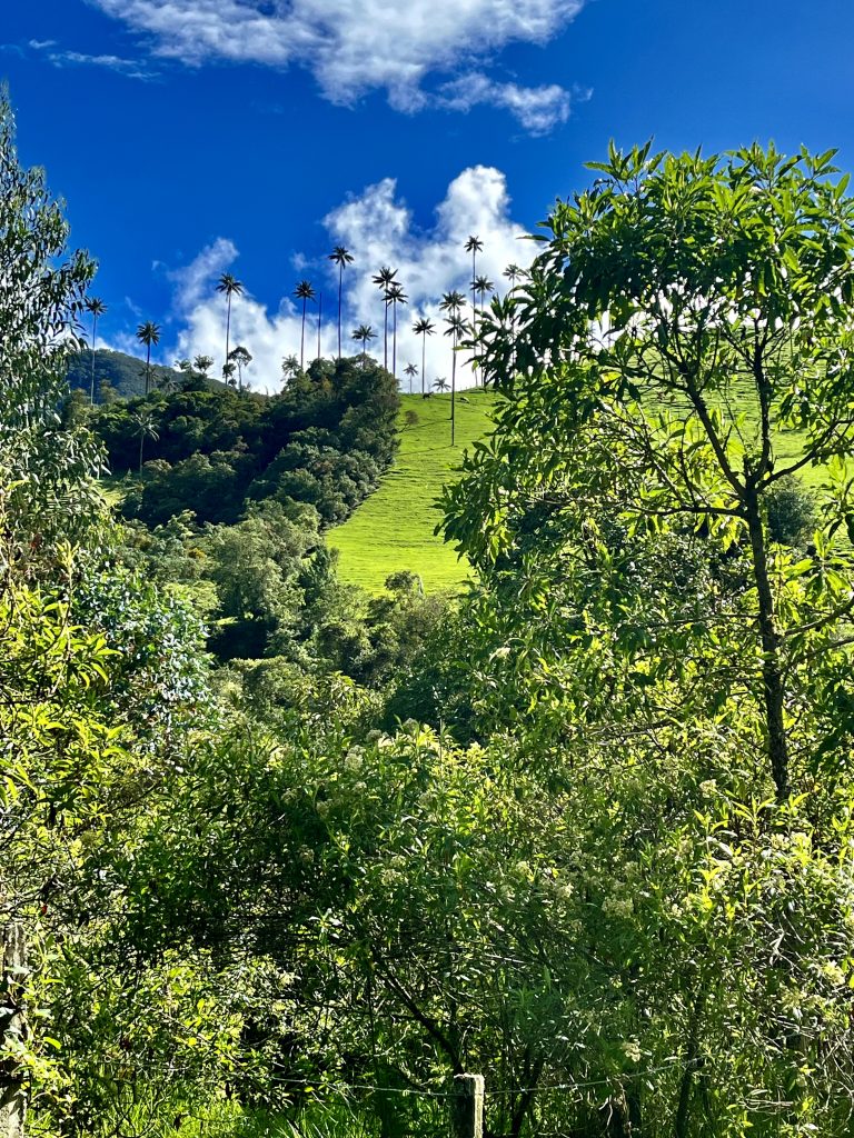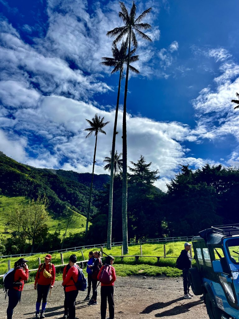 der blaue wird’s sein, und los geht die Fahrt zum Ausgangspunkt der Wanderung. Die Landschaft auf dem Weg dorthin ist traumhaft schön. Auch wenn von einem Tal die Rede ist, ist alles hügelig, saftig grün und von Drei- bis Fünftausendern gesäumt. Und die ersten Wachspalmen sind zu sehen. 🤗