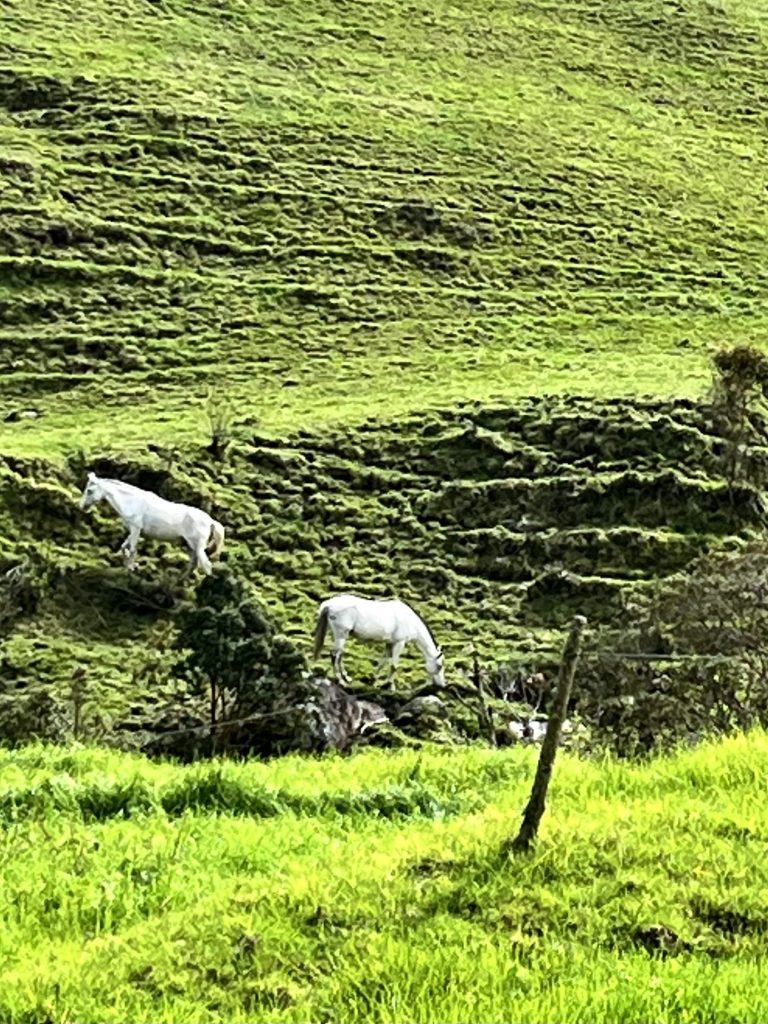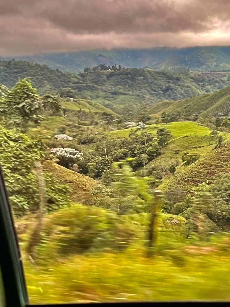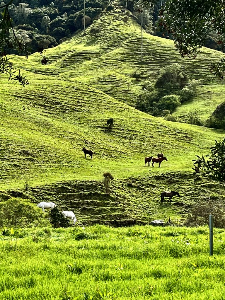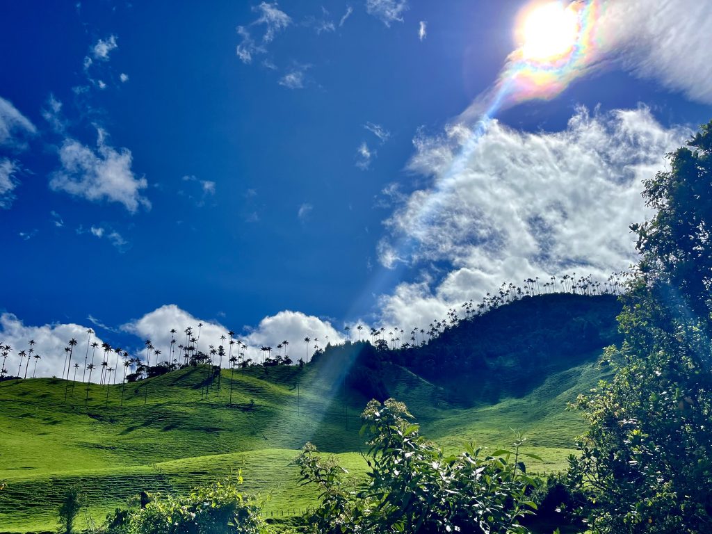 der blaue wird’s sein, und los geht die Fahrt zum Ausgangspunkt der Wanderung. Die Landschaft auf dem Weg dorthin ist traumhaft schön. Auch wenn von einem Tal die Rede ist, ist alles hügelig, saftig grün und von Drei- bis Fünftausendern gesäumt. Und die ersten Wachspalmen sind zu sehen. 🤗
