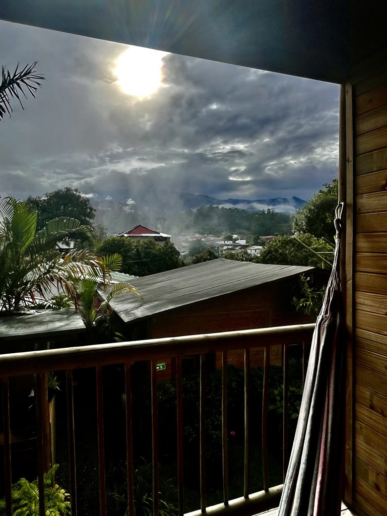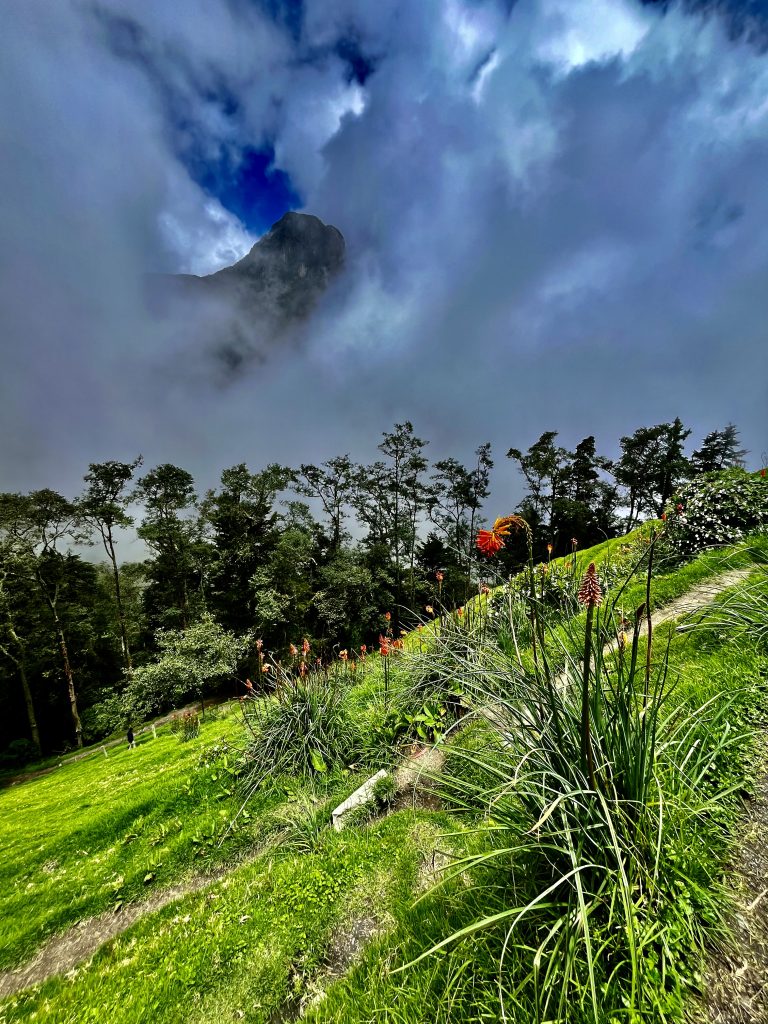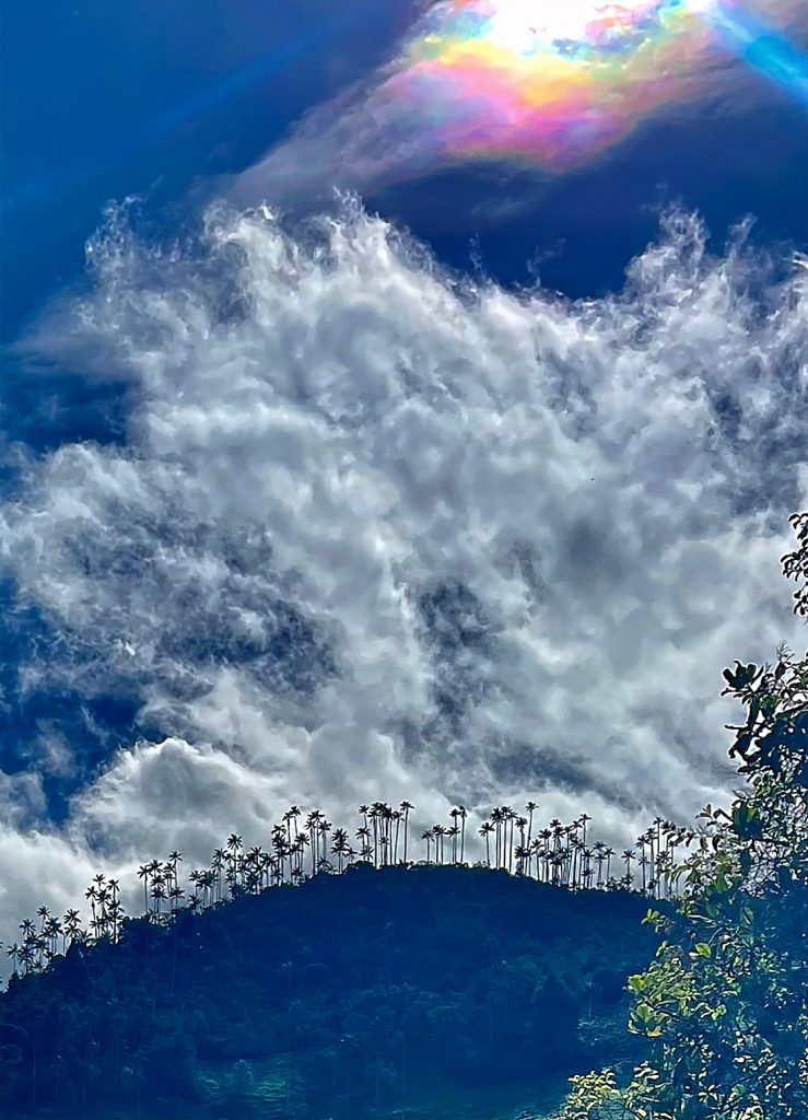 Dieser Anblick oben, ist doch wohl stark! Die Palmen am Kamm des Berges, die Wolkenformationen dahinter und dann noch die Regenbogenfarben durch die Sonnenstrahlen. 🥰