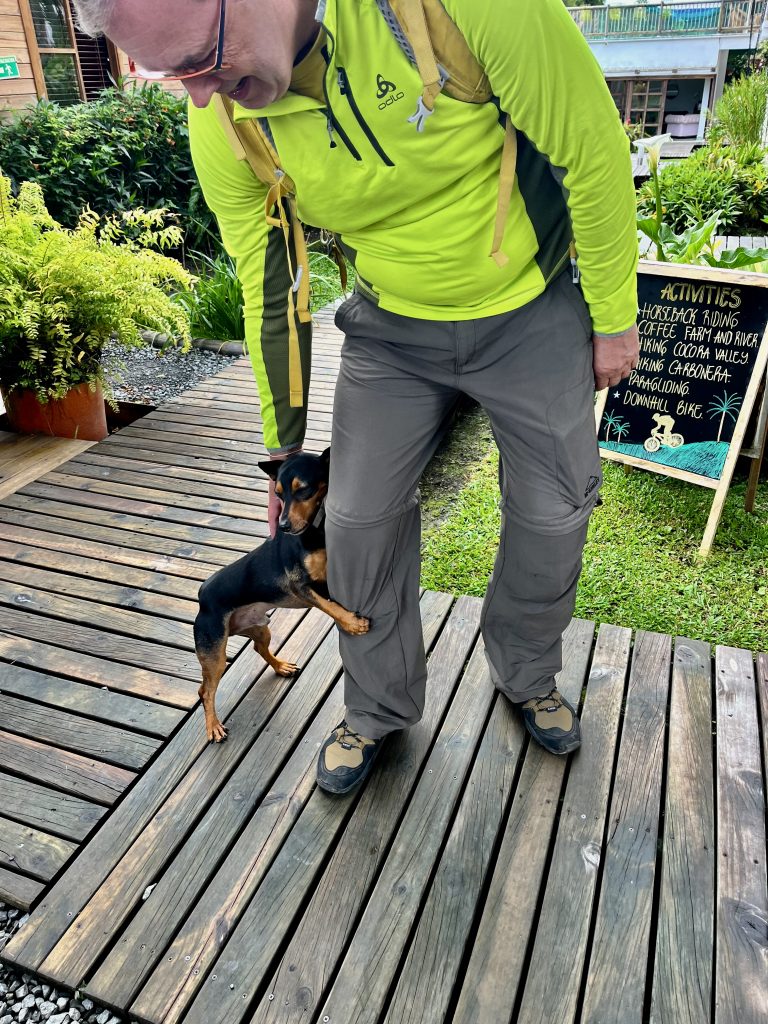 Was werden wir herzlich begrüßt. Dabei gehört er gar nicht zum Hotel. Er kommt vom Nachbarn rüber und hat seine Zuneigung sofort und eindeutig signalisiert. 😄