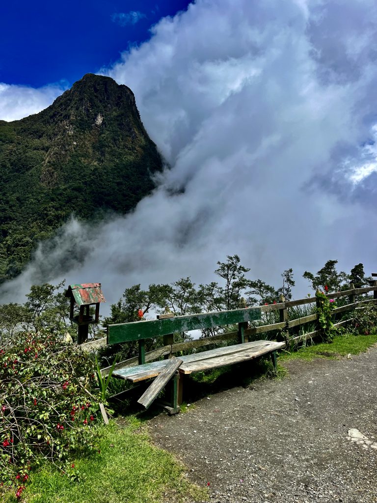 Wir rasten noch einmal bei einer Aussichtsplattform. Vorhin haben uns mehrere junge Kolumbianer und Kolumbianerinnen überholt und dabei festgestellt, dass sowohl ich als auch eine Kolumbianerin ‘Andrea’ heißen. Große Überraschung und Freude❣️ Hier auf der Plattform begegnen wir uns wieder, mit großem Hallo… Lustig! 😂