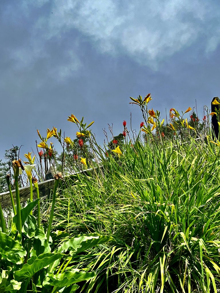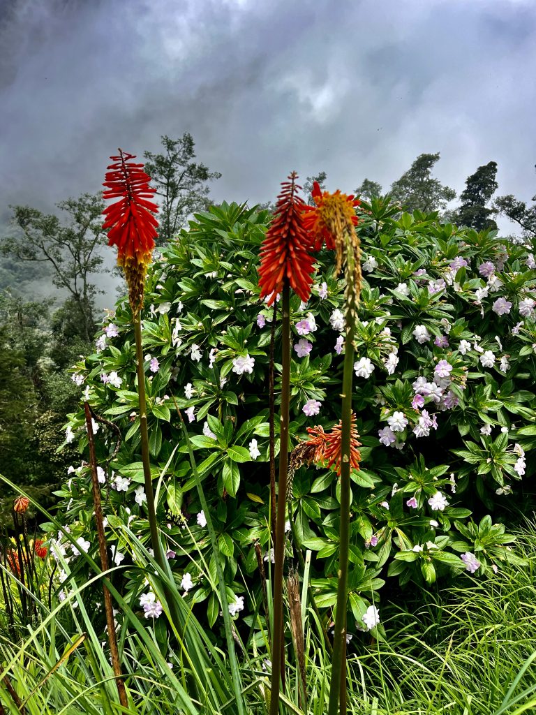 Klaus und ich sind klitsche klatsche nass. Den abgesetzten Rucksack muss ich sofort wieder aufsetzen, sonst fange ich an zu frieren. Hier oben wurden sooo schöne Blumen angepflanzt! Die muss ich noch fotografieren, bevor ich gleich meinen heißen Kakao mit Käse genießen werde. 😳 Ja, mit Käse!🧀