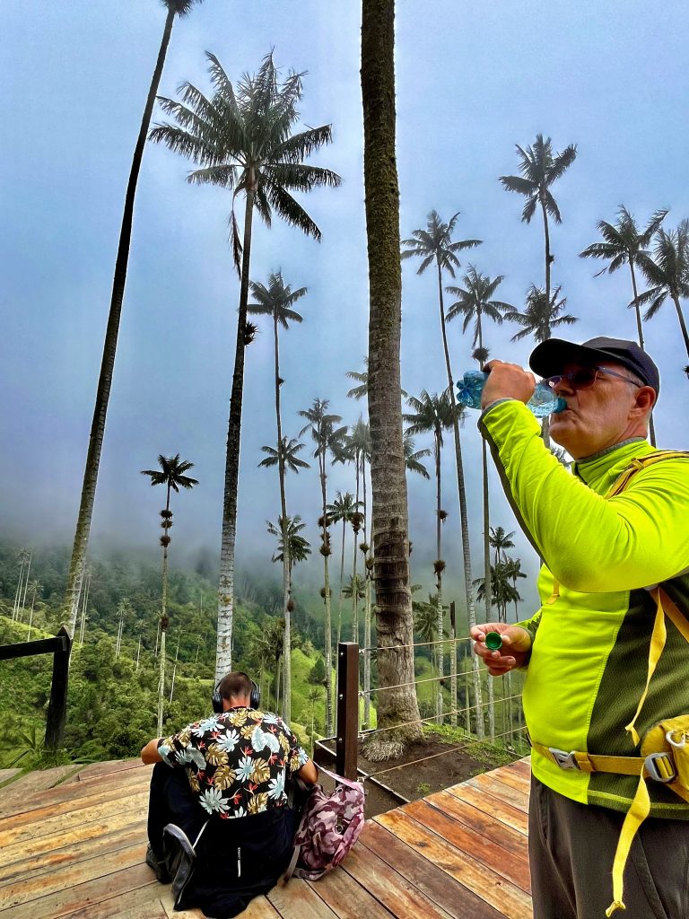 Rogelio macht das ganz geschickt! Immer wenn mein Schnaufen zu laut wird, macht er eine Pause und erklärt, erzählt oder fragt uns was. So erzählt er, dass früher die Wachspalmen wie ein Wald dastanden, nicht so vereinzelt wie jetzt. Sie wurden abgeholzt wie Nutzbäume. Auch waren (und sind) ihre Palmenherzen für viele kirchliche Prozessionen heißbegehrt. Er und viele seiner Kumpels setzen sich nun schon seit Jahren dafür ein, dass das ein Ende findet, mit Erfolg. Seit die Palme zum Nationalbaum erkoren wurde, 1985, ist es einfacher geworden. Aber das betont er immer wieder, es waren die jungen Leute, die die alten bekehren mussten. Die Worte von Brian, von der Comuna 13, klingen mir wieder im Ohr. Gute Arbeit, Rogelio! Jetzt kann ich wieder weiter. 😉