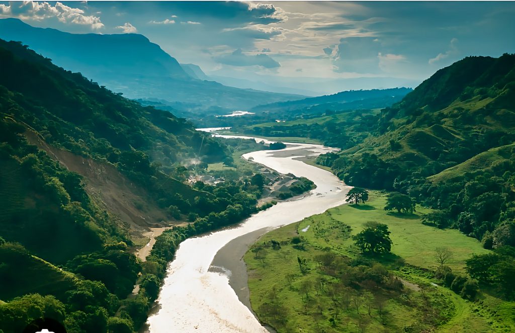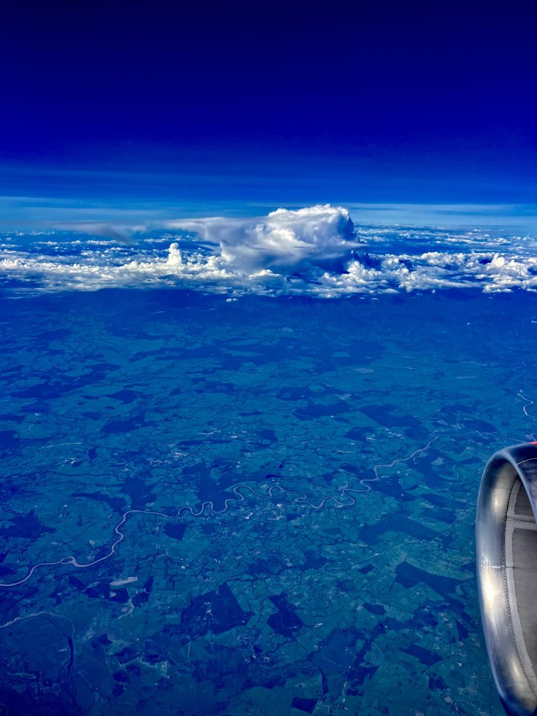 Klaus begeistert die fette Wolke da hinten, er sitzt mal wieder am Fenster 😎. Der sich schlängelnde Magdalena River fesselt uns beide.