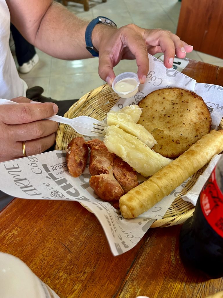 Wir sitzen im Taxi nach Barranquilla. Immigration und Zoll wollen uns persönlich sehen. Okay. Louis wird dann bei den Ämtern zu uns stoßen und uns auch wieder zur Marina zurückfahren. Sehr schön❣️ Vor Ort stellt sich raus, dass der Beamte nicht da ist, weil ein großes Schiff abgefertigt werden muss, welches aber noch nicht mal im Hafen angekommen ist. Das heißt, wir haben Zeit zu überbrücken. Was machen wir denn da? Alles klar, wir fahren mit Louis was essen. 😆